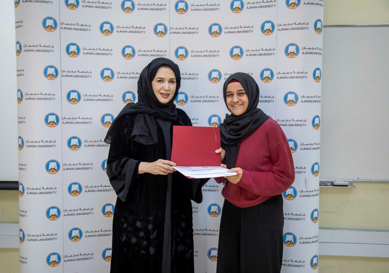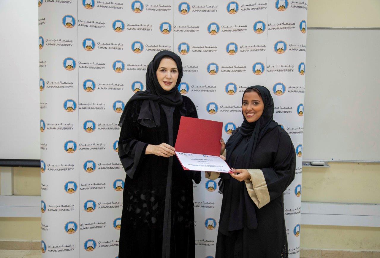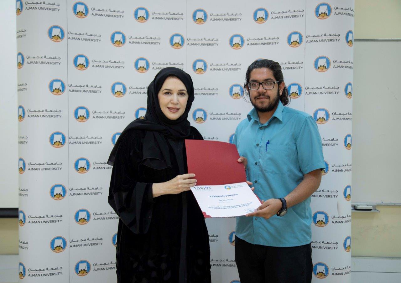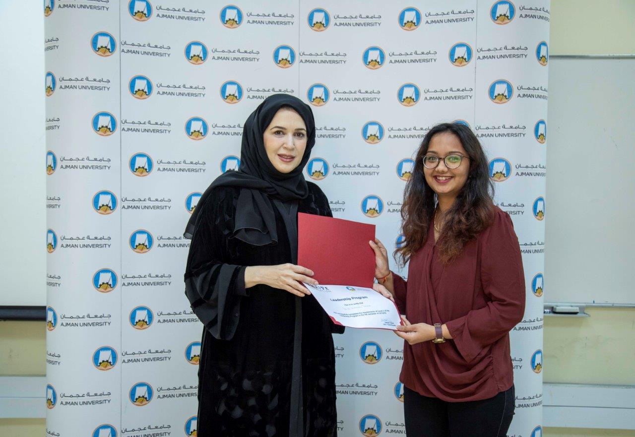 كرمت الدكتورة نهلة القاسمي، عميدة شؤون الطلبة بجامعة عجمان خريجي برنامج إعداد القادة للعام الجامعي 2019-2020 والذي نظمه مكتب الحياة الطلابية واستمر على مدار 6 أيام ، بمشاركة نحو 50 طالبا وطالبة.