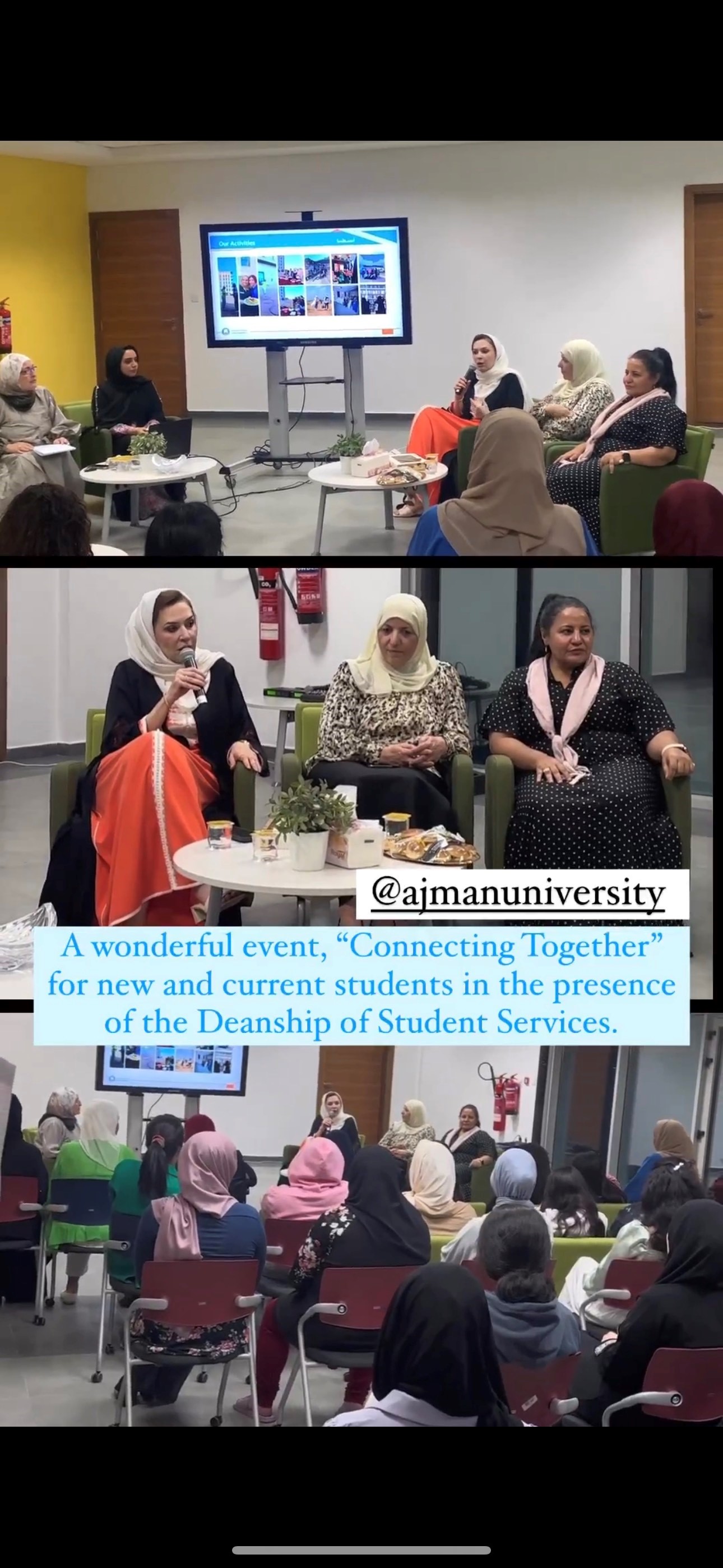 The Student Housing Office organized a wonderful event, “Connecting Together” for new and current students in the presence of Dr. Nahla Al Qassimi, Dean of Student Services, Eng. Leena Taifour, Hostel Manager, Dr. Dalia Bedewy, Manager of the Student Counselling Unit and Dr. Fetta Djessas, Manager of University Medical Services along with hostel supervisors.
