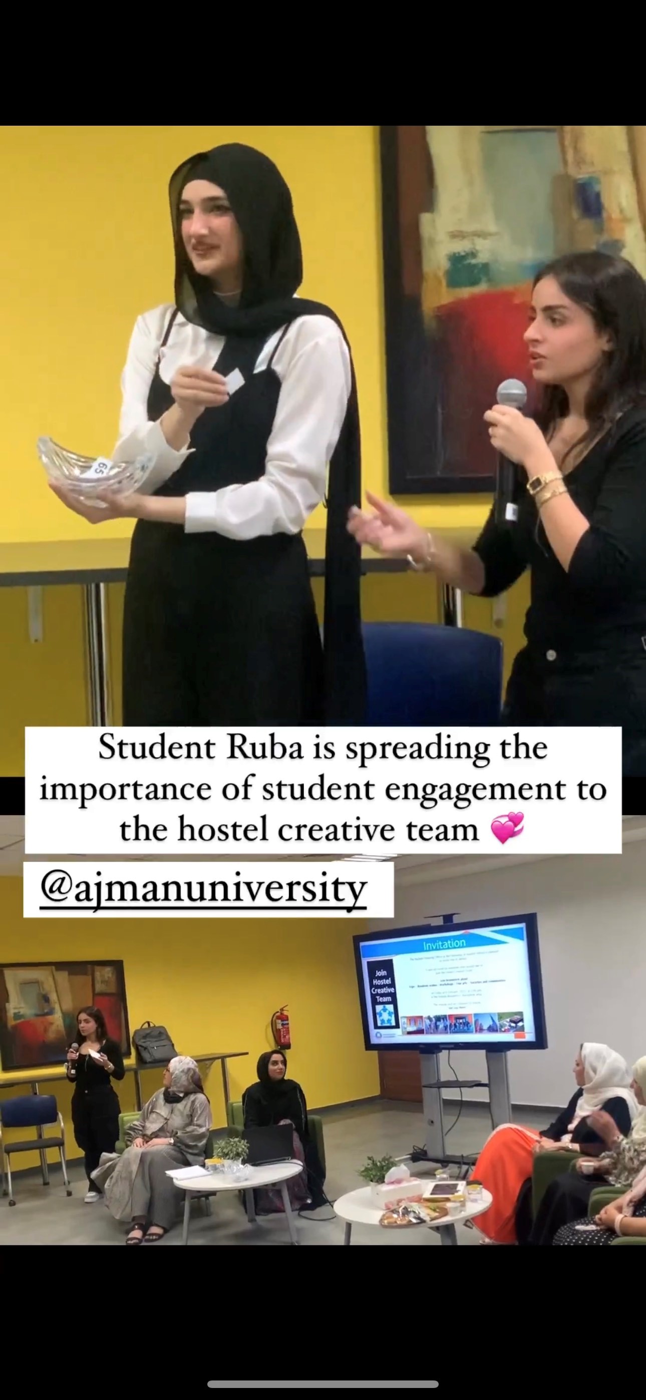 The purpose of this event was to highlight the significant hostel facilities and services and to announce upcoming events and activities and to encouraged students to participate as well as inviting them to become members of different university activities and women's empowerment programs.