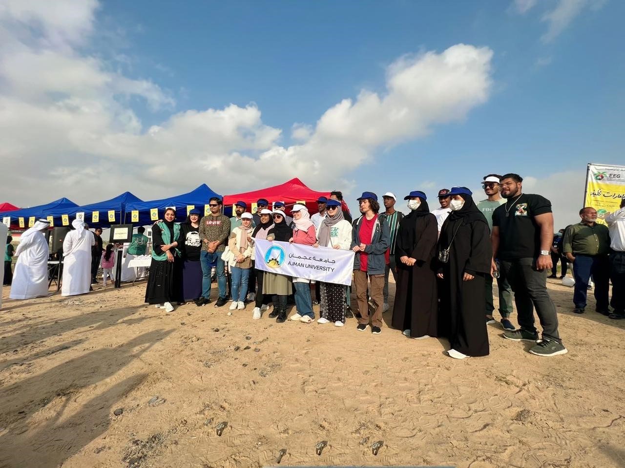As part of its responsibility towards its community, the Office of Students Housing in coordination with the Office of Sustainability at Ajman University (AU) took part in a community engagement event to participate in the special edition of the Clean UAE 2023 campaign in collaboration with Emirates Environmental Group.