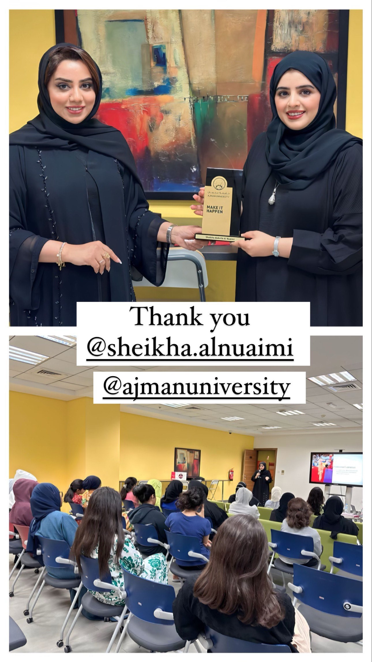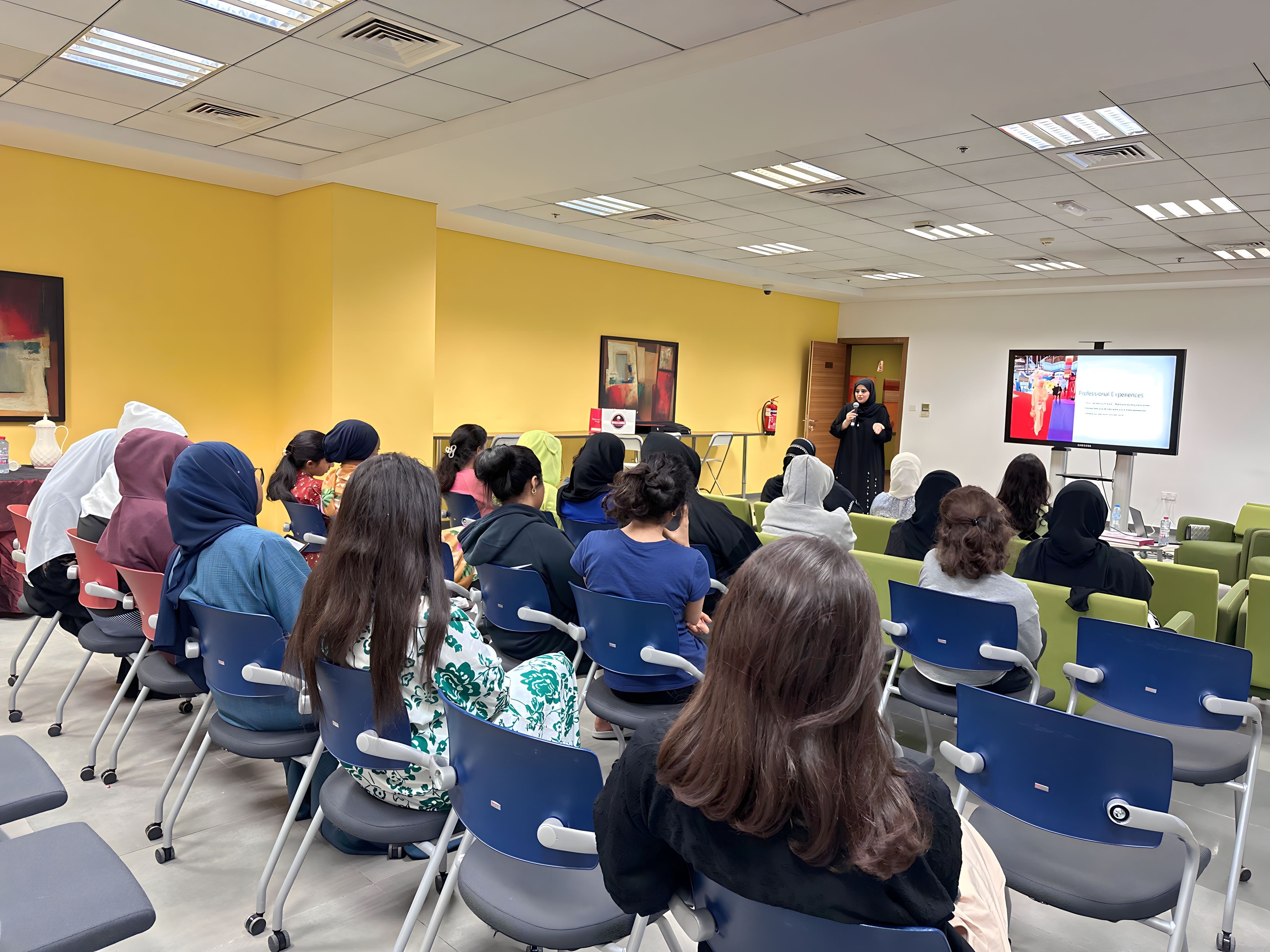 The Office of Students Housing organized an informative debating session at AU female residence titled “The Impact of Education on Employability,” led by the talented Sheikha Al Nuaimi. Sheikha Al Nuaimi shared her personal experiences, delving into topics such as education, the workplace and business management. |