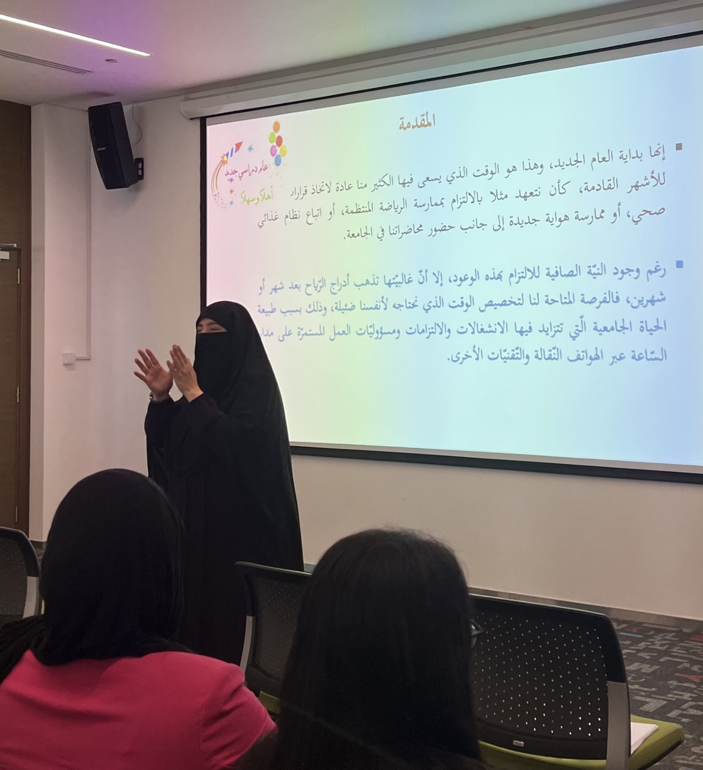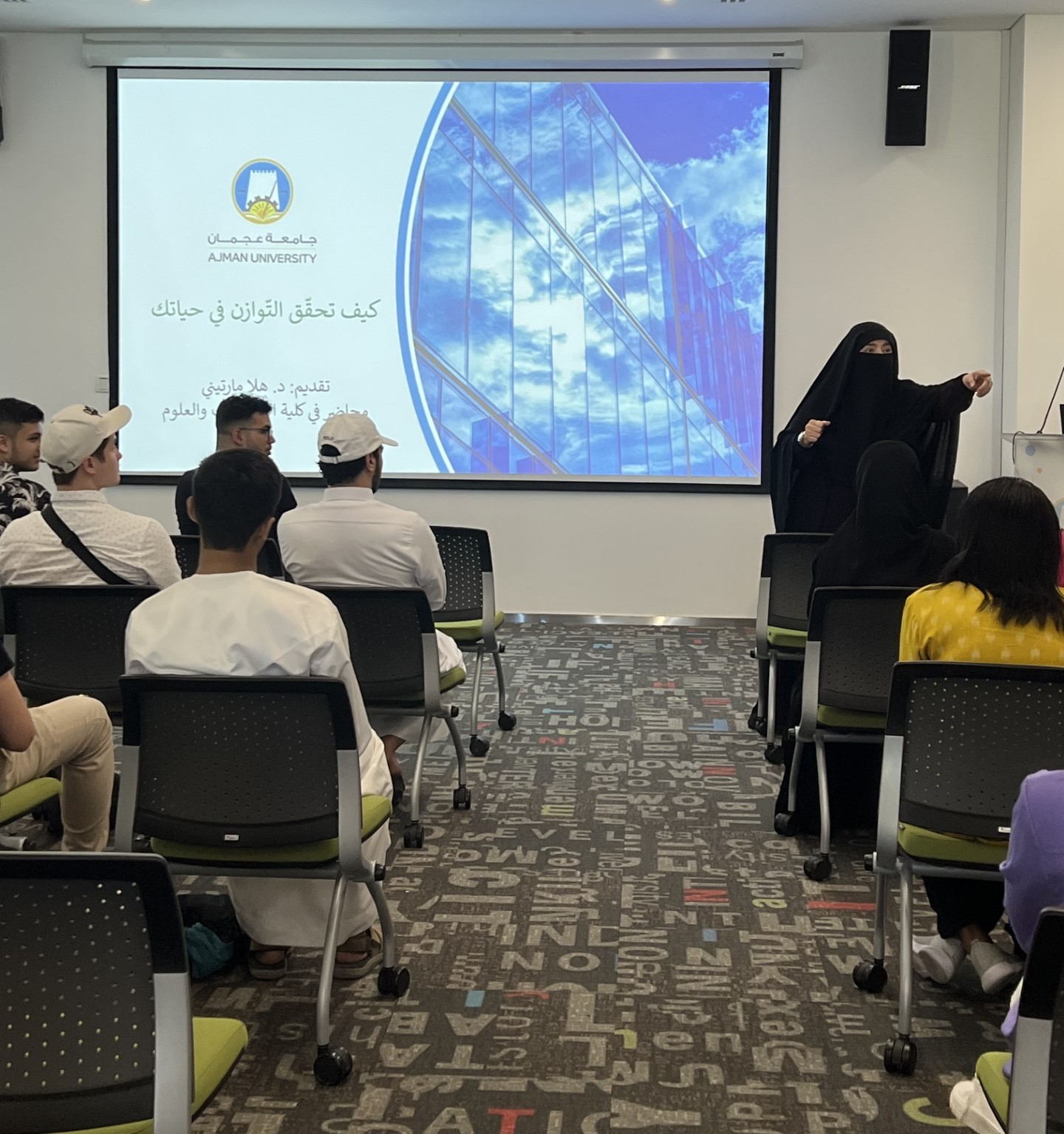 On August 22, 2023, the Counseling Unit organized a workshop on how to balance study and life at university, the ways to overcome the obstacles, and the importance of time management. It was presented by Ms. Hala Martini, Assistant Instructor at the College of Humanities and Sciences.