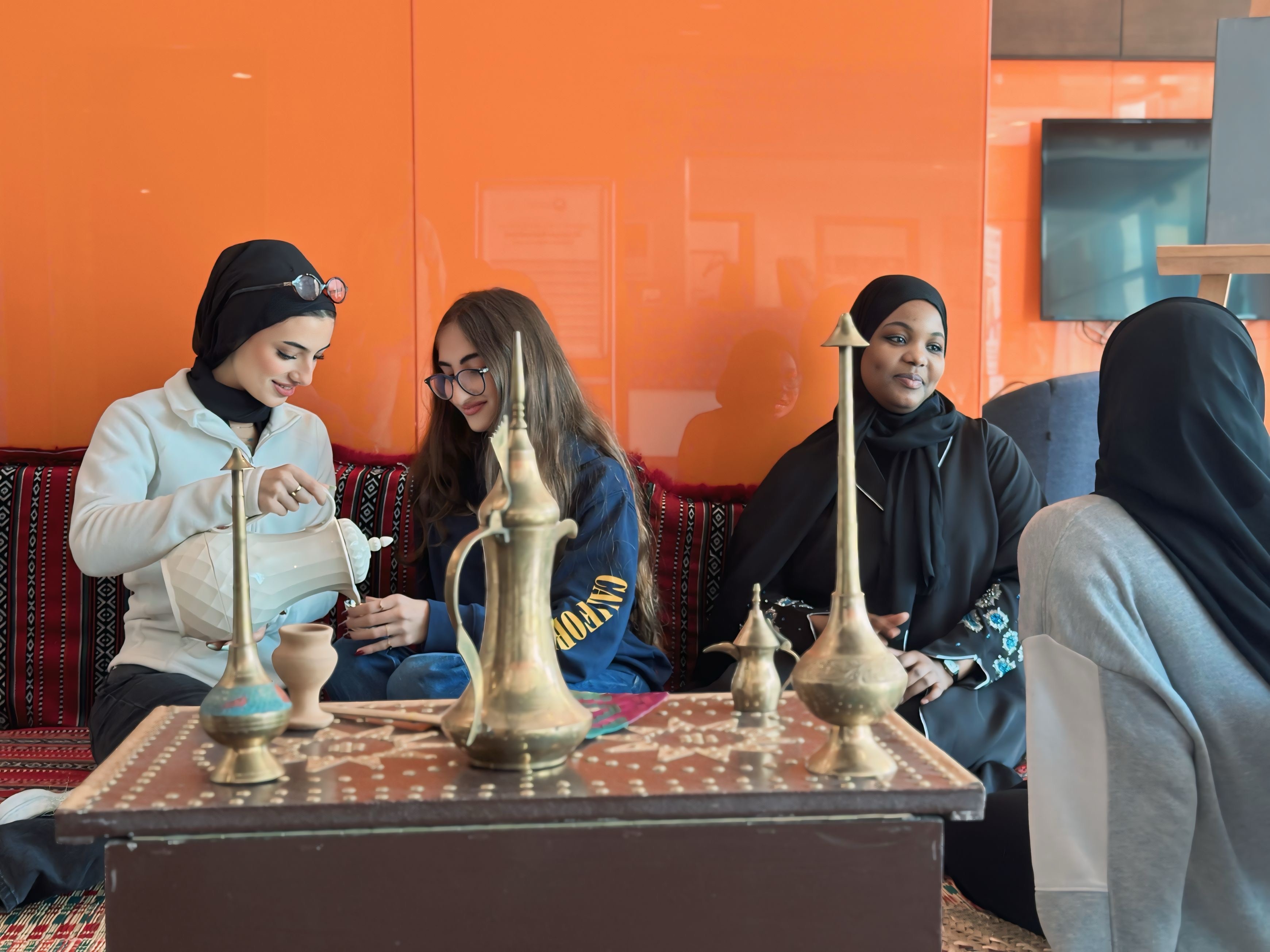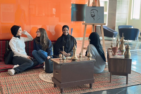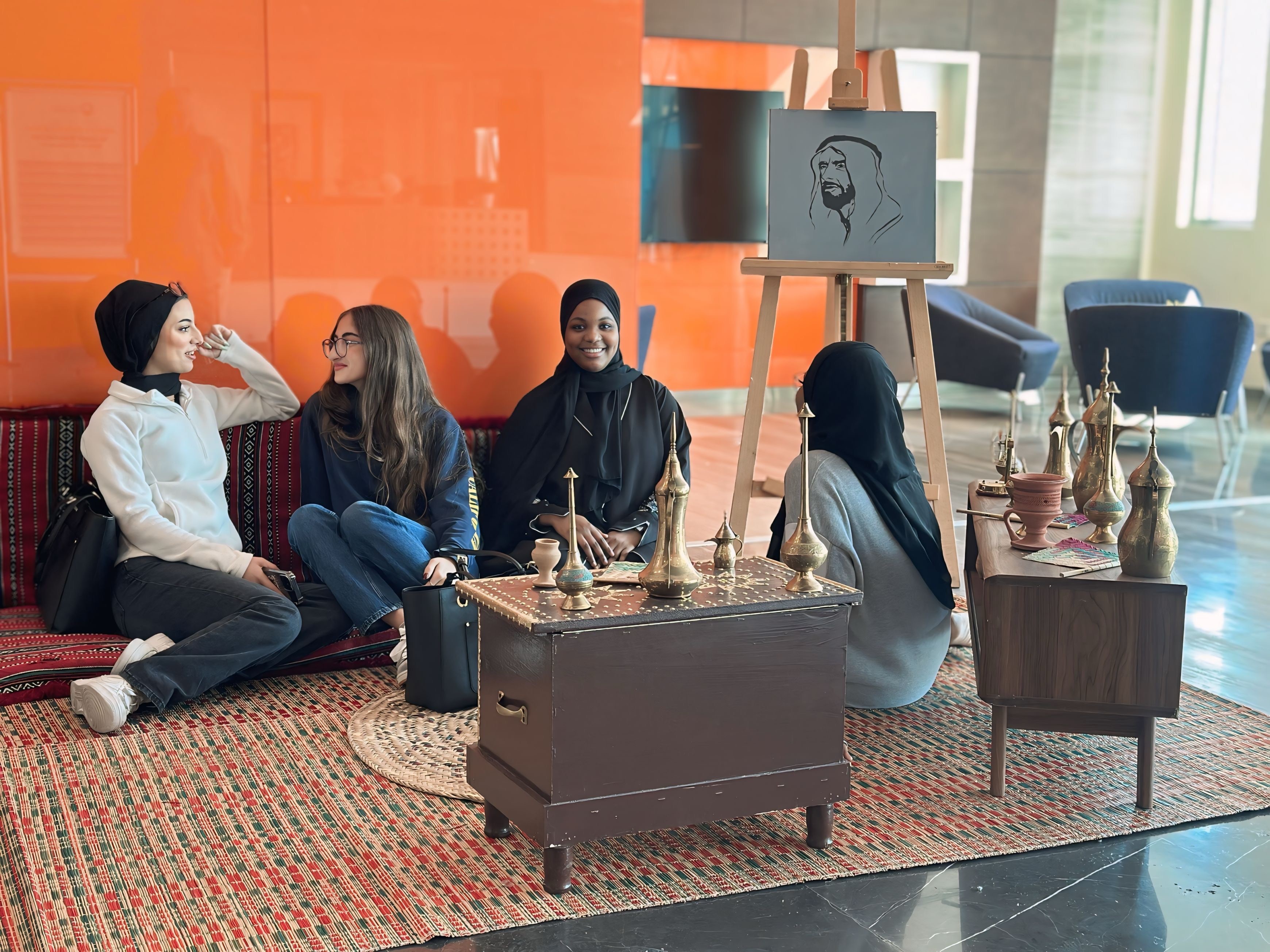 The event venue was well-organized, featuring a dedicated corner in the reception area decorated with traditional UAE themes, allowing students to gather and enjoy the celebration. The celebration was a great success, with many students expressing their enthusiasm and pride for the UAE.