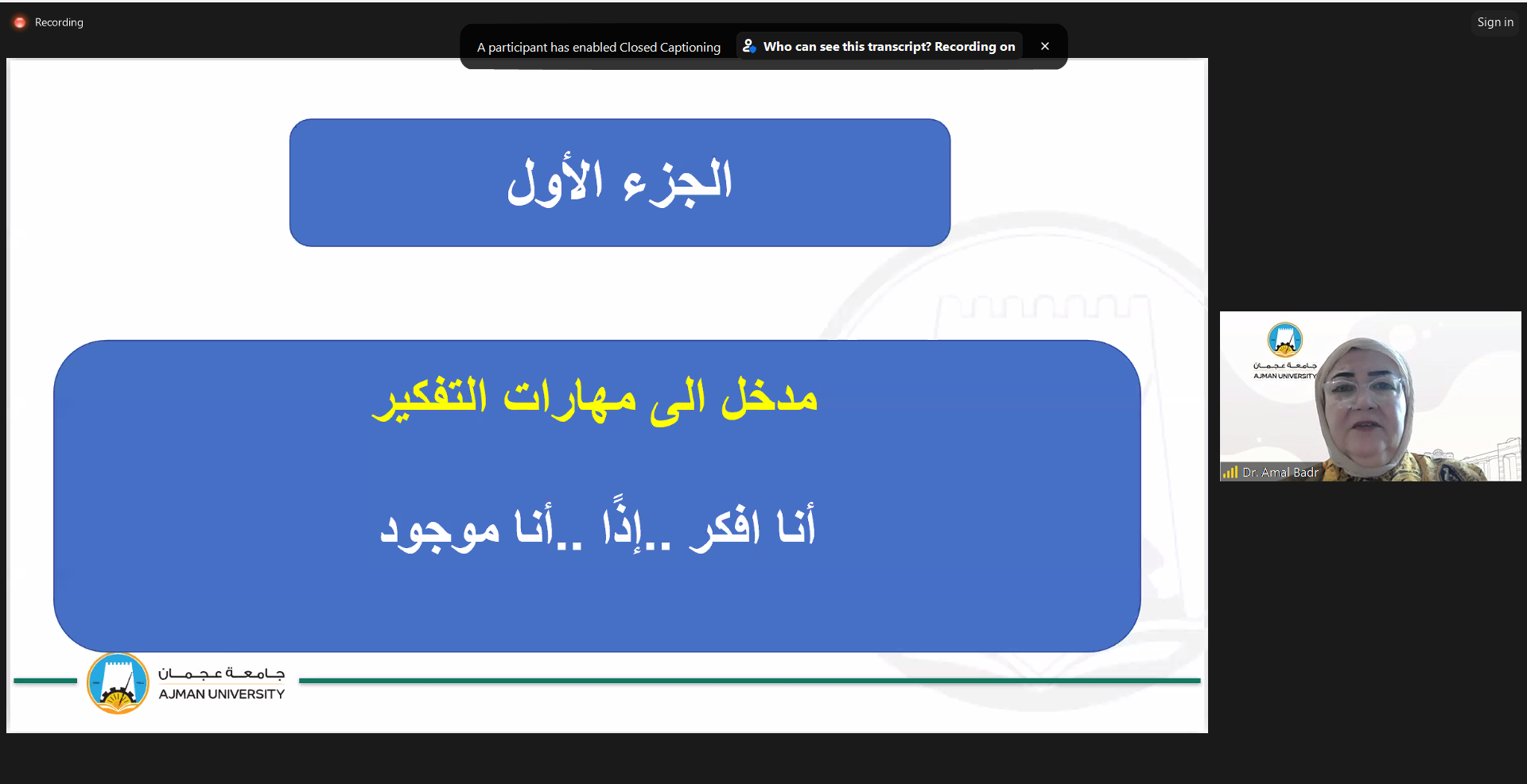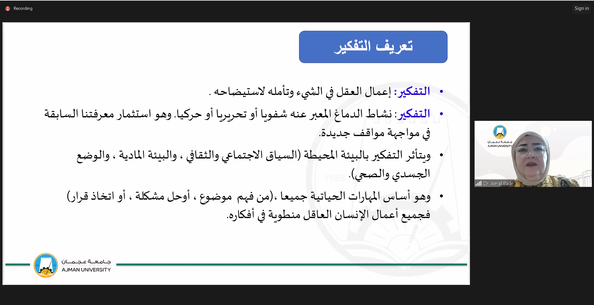On September 17, 2024, the Counseling Unit hosted an engaging webinar titled "From Thoughts to Action: Applying Critical Thinking Daily," presented by Dr. Amal Badr, Associate Professor at the College of Mass Communication. The session highlighted the importance of critical thinking in everyday decision-making and problem-solving. Dr. Amal Badr shared practical techniques to enhance critical thinking skills, encouraging participants to apply these strategies in their daily routines.