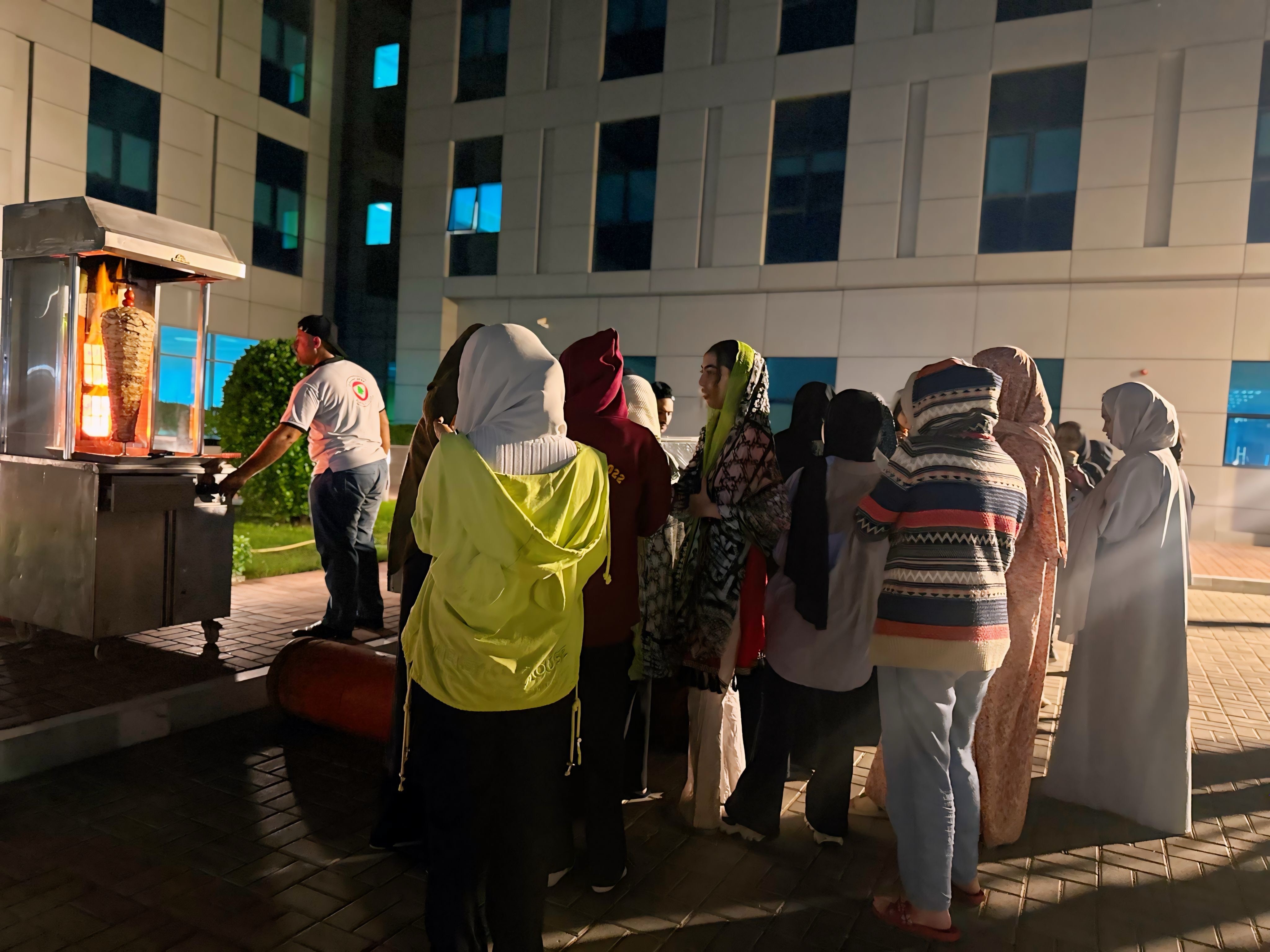 The Office of Students Housing hosted a brilliant initiative, the "Shawarma Study Break," tailored for female residents to provide a rejuvenating pause amidst the intensity of finals. Live cooking stations infused an air of excitement as students savored freshly prepared shawarma.