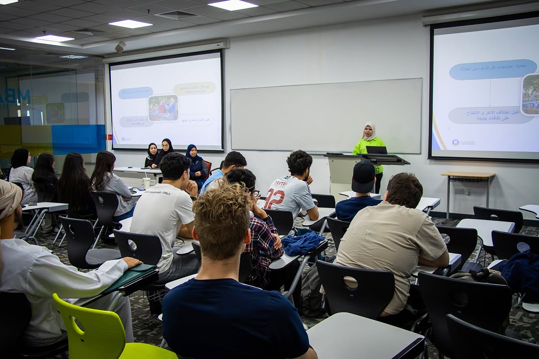 The Counseling Unit, in collaboration with the Center for Inclusive Learning, hosted a group meeting on January 7, 2025. AU alumna Raneem Hammoudeh and students Aya Daas and Darin Abu Tayem joined the discussion, moderated by Doaa Rafeq Al-Alimi. The conversation focused on the importance of building strong relationships within the university community, sharing experiences, and adopting strategies to foster lasting connections. This initiative underscored Ajman University’s commitment to student well-being and the role of supportive social networks in academic and personal success.