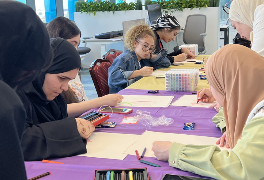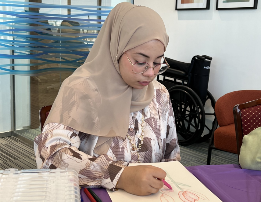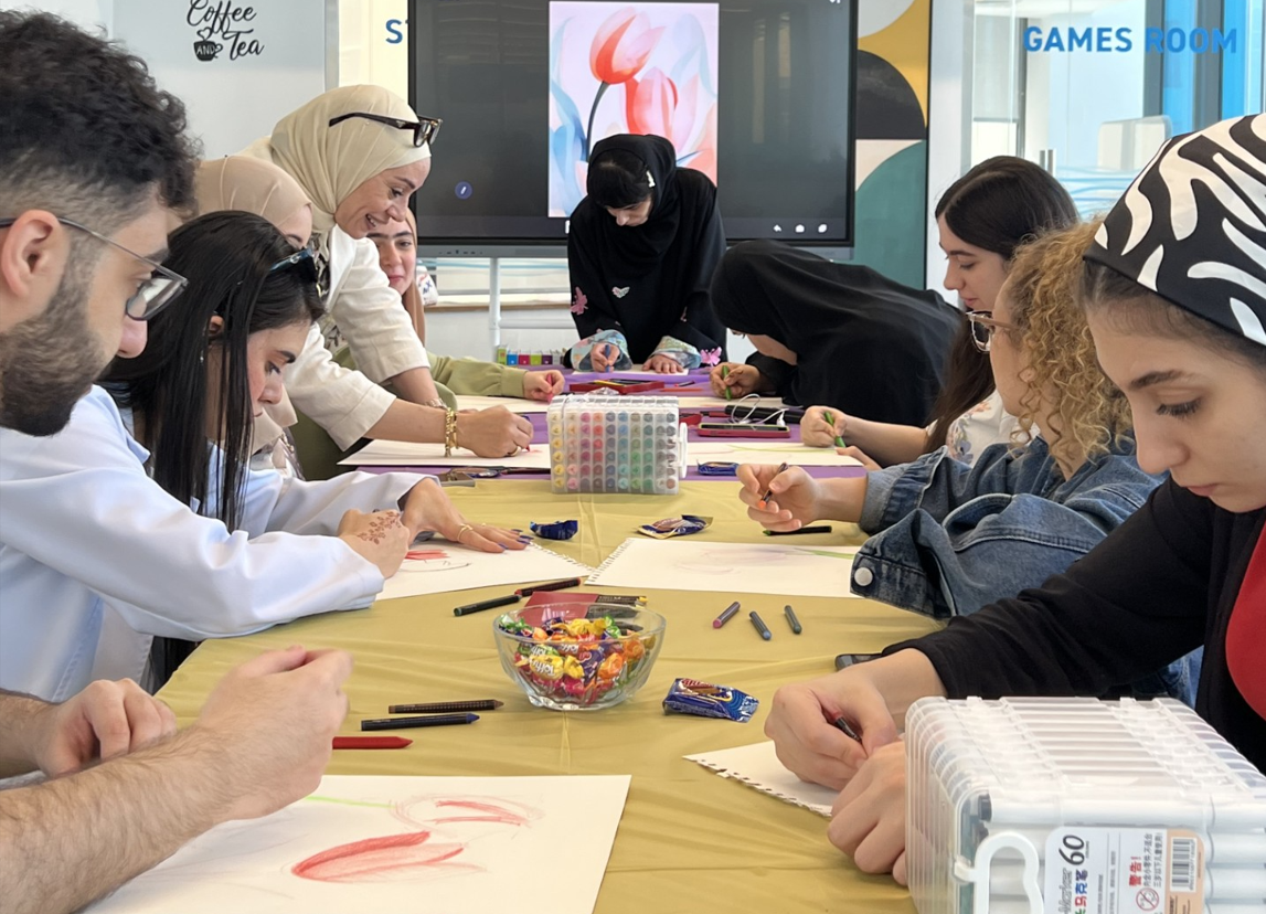 The College of Mass Communication, in collaboration with the Counseling Unit at Ajman University, celebrated the successful implementation of a powerful expressive art training sessions led by Huda, a talented student of determination. This inspiring initiative, carried out as part of Huda’s graduation project, marked the first collaboration between the College and the Center for Inclusive Learning for Students of Determination. The workshop was a vibrant reflection of Huda’s creativity—filled with color, energy, and deep emotion. Together, they brought her artistic vision to life, transforming creativity into connection, and support into empowerment. More than just an art activity, this was a meaningful step toward building a more inclusive and compassionate community—one where all voices are seen, heard, and celebrated. This initiative supports the UN Sustainable Development Goal 4: Quality Education by fostering inclusive and equitable learning environments for all students.