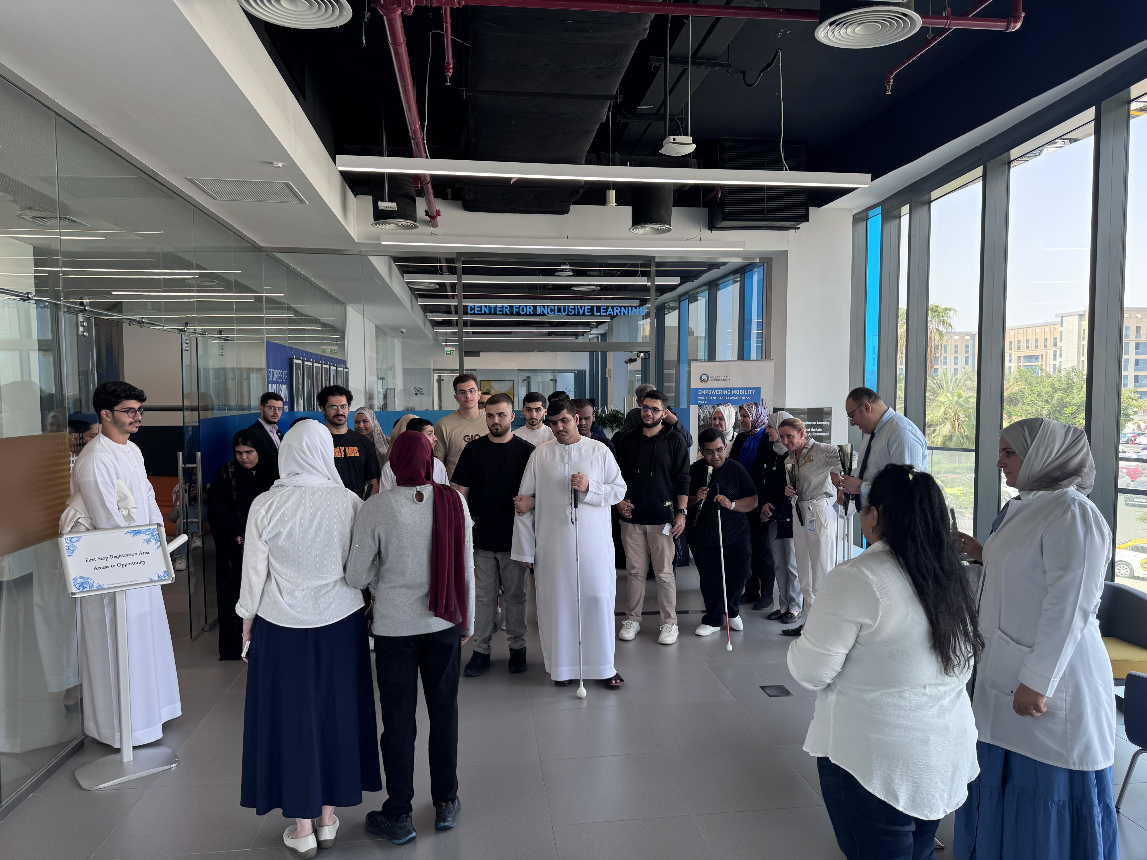 In recognition of White Cane Awareness Day, the Center for Inclusive Learning organized the “Empowering Mobility – White Cane Safety Awareness Walk” on October 15, 2025. The event, led by Ajman University’s visually impaired students, aimed to raise awareness about accessibility, independence, and inclusion for individuals with visual disabilities. Starting from the Center for Inclusive Learning, the walk brought together students, faculty, and staff in a shared commitment to promoting inclusivity and celebrating the spirit of empowerment within the AU community.