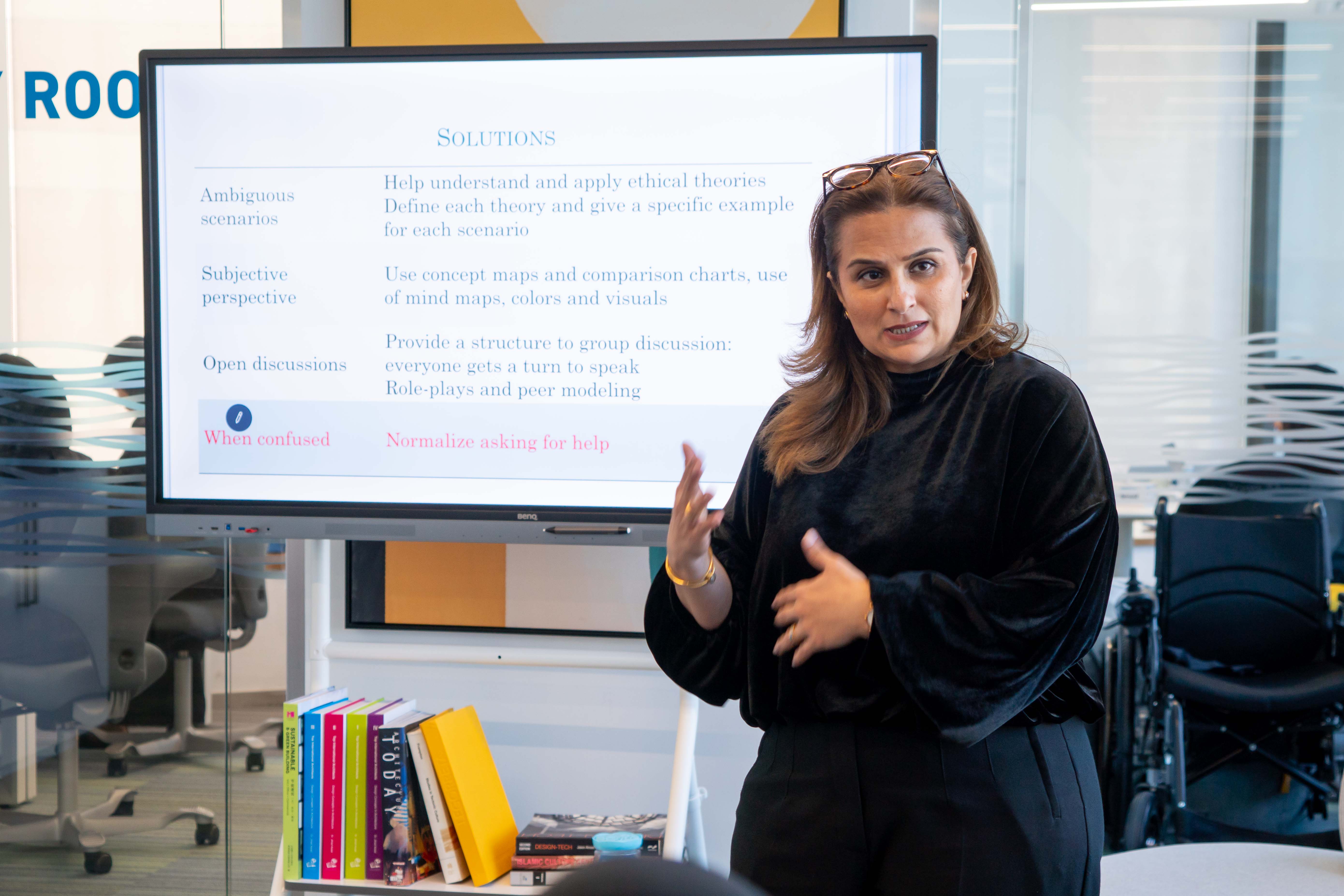 | The Student Success Center (SSC), in collaboration with the Center for Inclusive Learning, hosted a workshop titled “Learning Without Limits – Empowering Peer Tutors for Diverse Abilities” on October 20 , 2025. Led by Dr.Erum Khan and Ms. Samah Abusniemeh, the workshop aimed to enhance peer tutors’ knowledge and skills to more effectively support students with diverse learning needs. The program featured engaging introductions, practical strategies for assisting students with visual impairments, and effective approaches to supporting learners with autism. This initiative underscores Ajman University’s strong commitment to inclusive education and its dedication to fostering student success. |