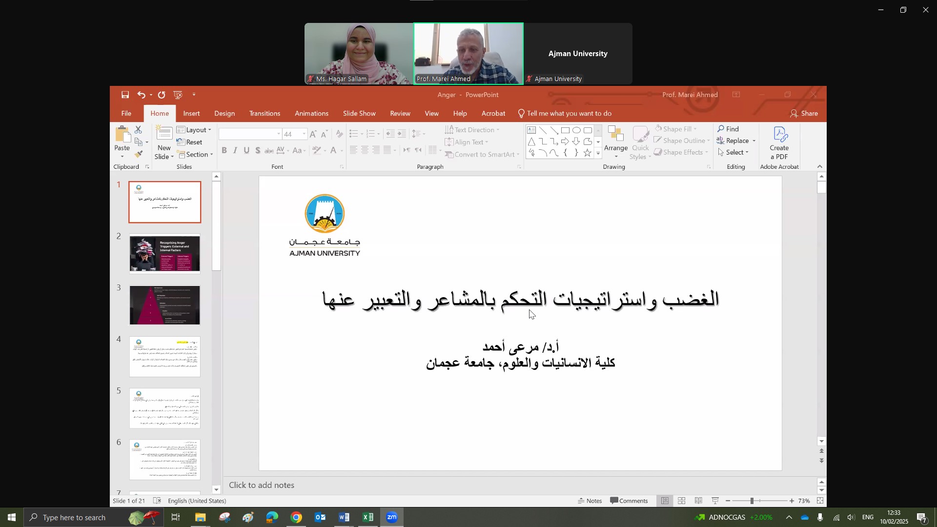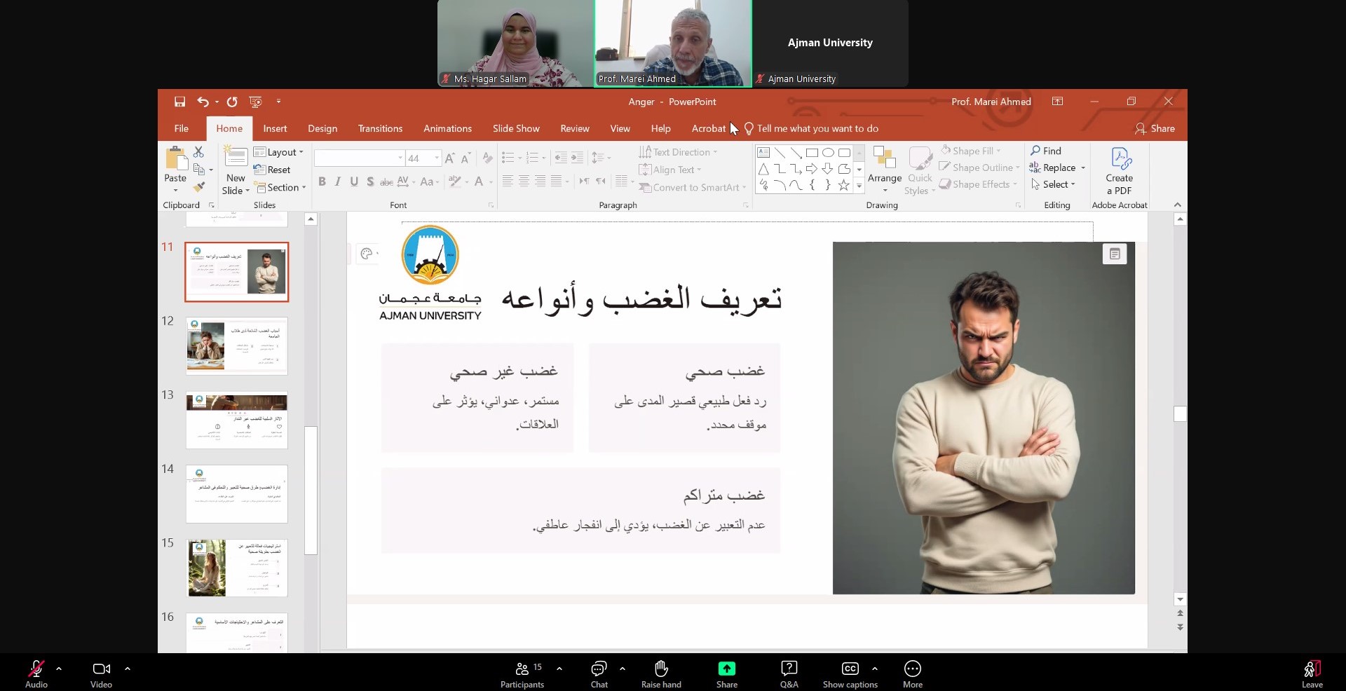 The Counseling Unit at Ajman University organized a webinar on February 10, 2025, featuring Prof. Marei Ahmed from the College of Humanities and Sciences. The session explored effective strategies for managing anger, expressing emotions in a healthy way, and developing emotional control. Moderated by Ms. Hagar Sallam, the discussion provided valuable insights to help students navigate challenging situations with resilience and self-awareness. This initiative reflects the Counseling Unit’s commitment to supporting students' emotional well-being and personal growth.