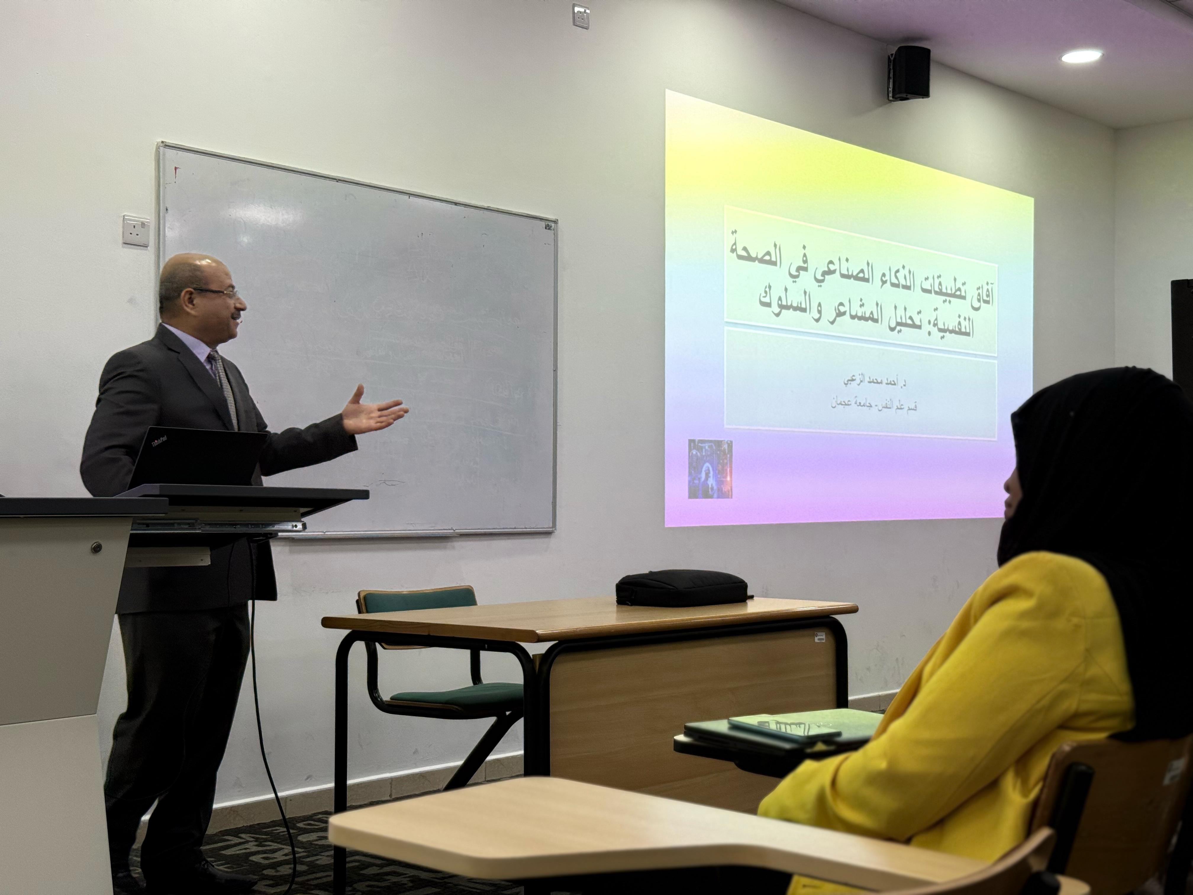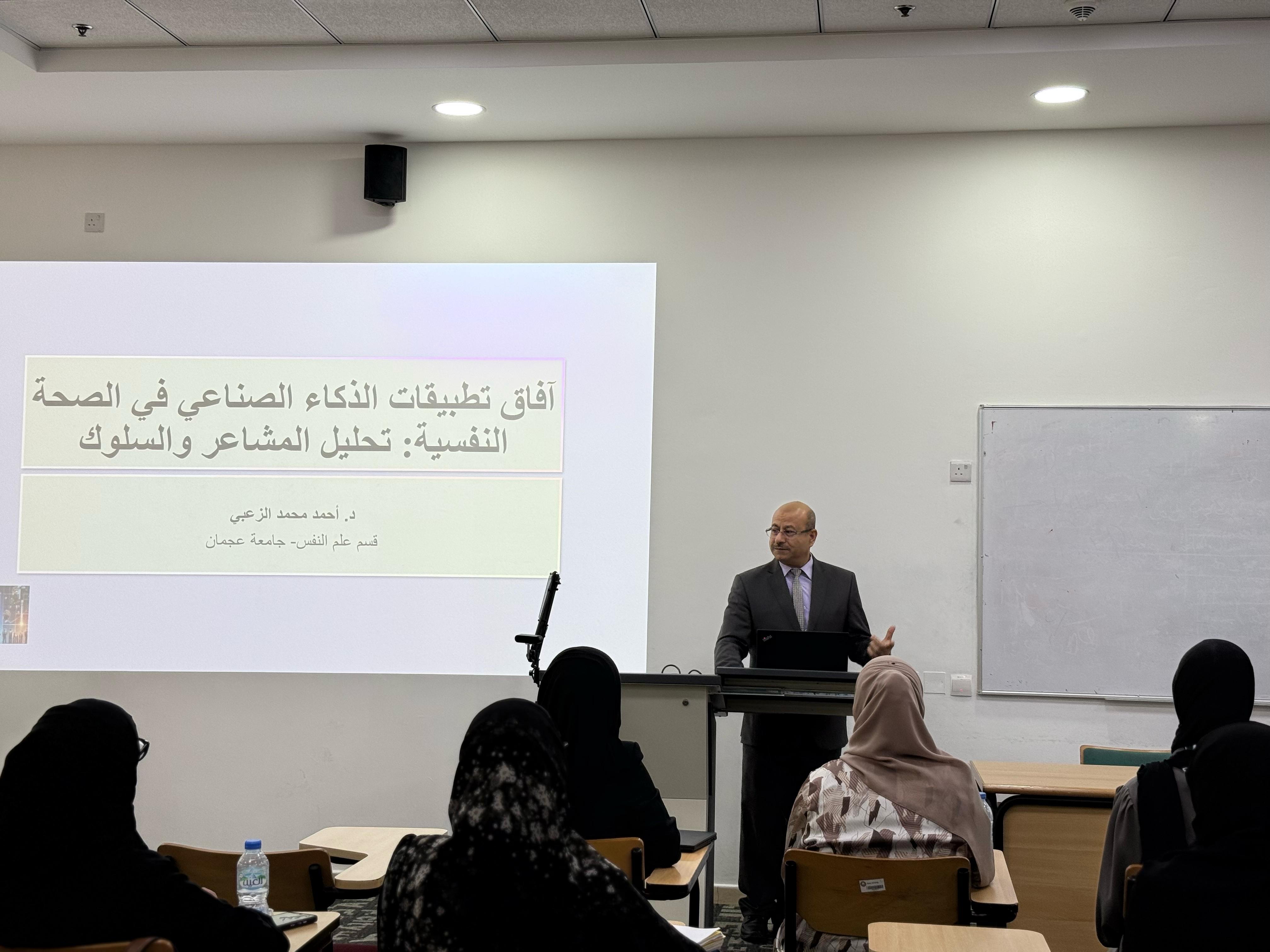 The Counseling Unit at Ajman University organized a session on April 8, 2025. The session was delivered by Dr. Ahmad Alzubi and moderated by Dr. Iesha Hasona, both from the College of Humanities and Sciences. It focused on exploring the impact of artificial intelligence on student mental health and overall well-being. This initiative highlights the Counseling Unit’s dedication to addressing contemporary challenges facing students and promoting psychological awareness within the university community.