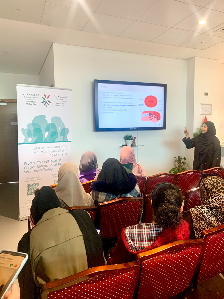 The Office of Medical Services, in collaboration with Mubadarat, Sheikh Khalifa Medical City – Ajman (SKMCA), successfully conducted a Cervical Cancer Awareness Session at the Medical Clinic, Student Hub Building.