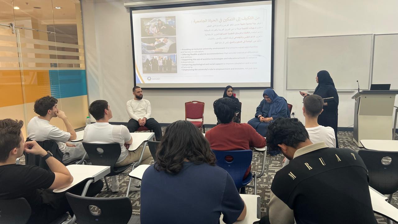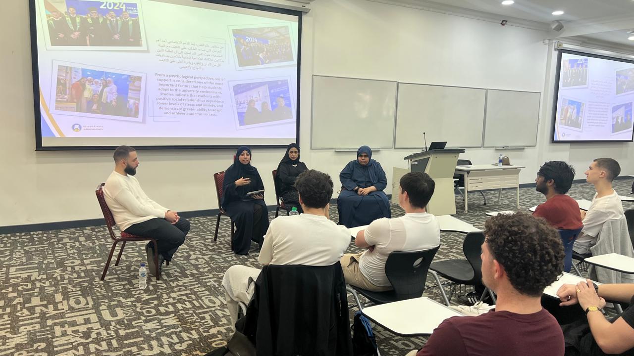 As part of Orientation Week, the Counseling Unit organized a group meeting between AU existing students and new registered students on January 13, 2026, moderated by Doaa Rafeq Al-Alimi, student, College of Pharmacy & Health Sciences.