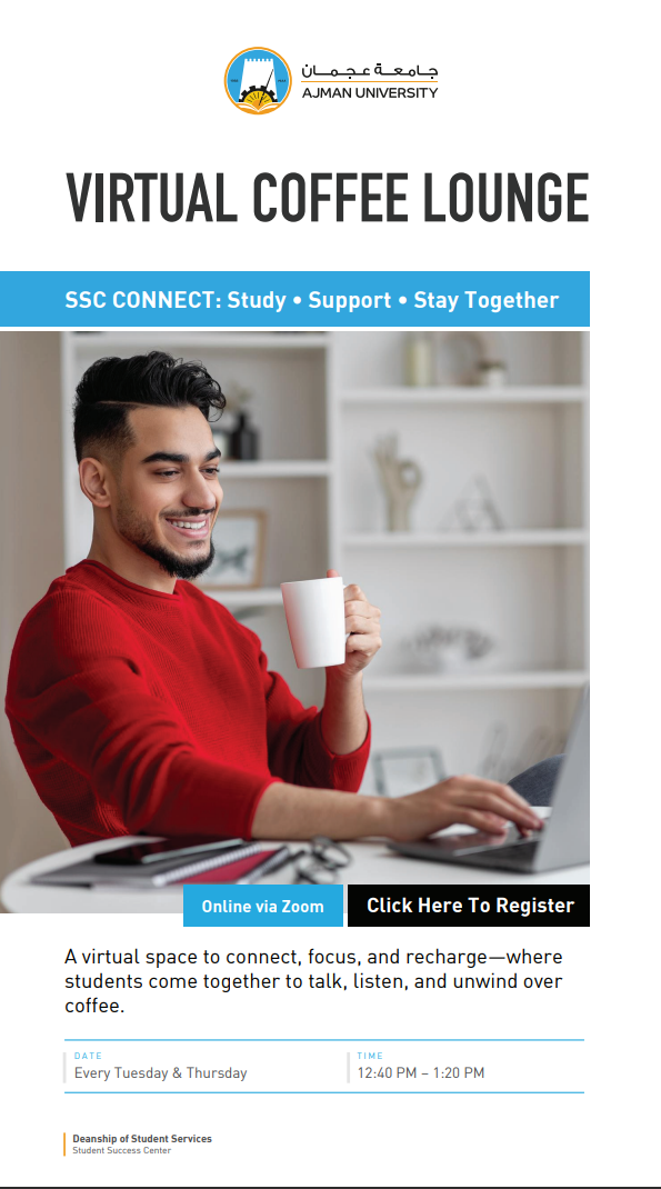 The Student Success Center (SSC) hosted SSC Connect: Virtual Coffee Lounge on April 2, 2026, providing a relaxed and supportive space for students to connect, share, and unwind in an informal setting.
