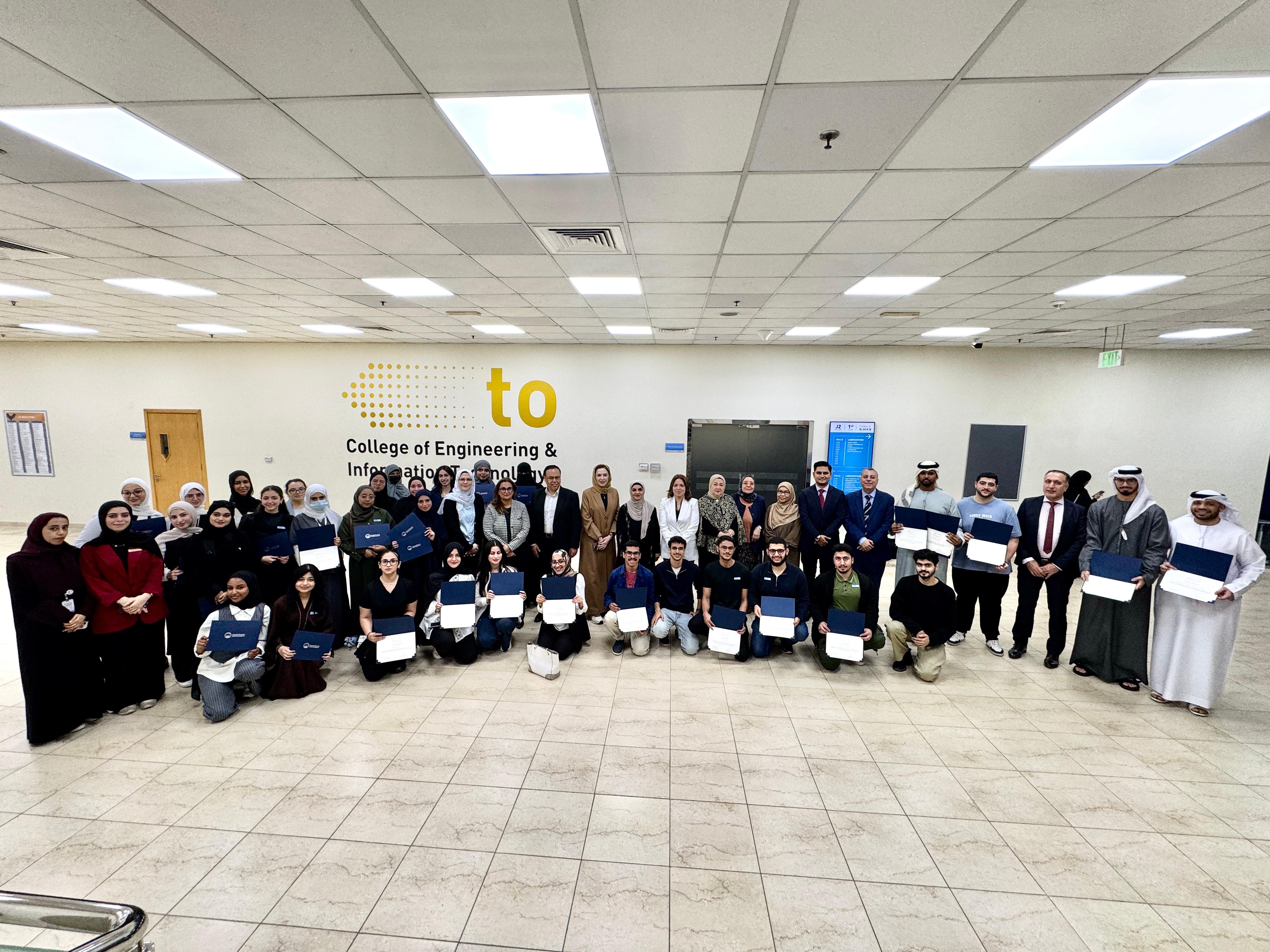The awards were presented by Dr. Nahla Al Qassimi, Dean of Student Services, in the presence of Dr. Erum Khan, Manager of SSC, College Faculty Liaisons, faculty members, and Dr. Faris Al Hawari, Dean of the College of Humanities and Sciences.