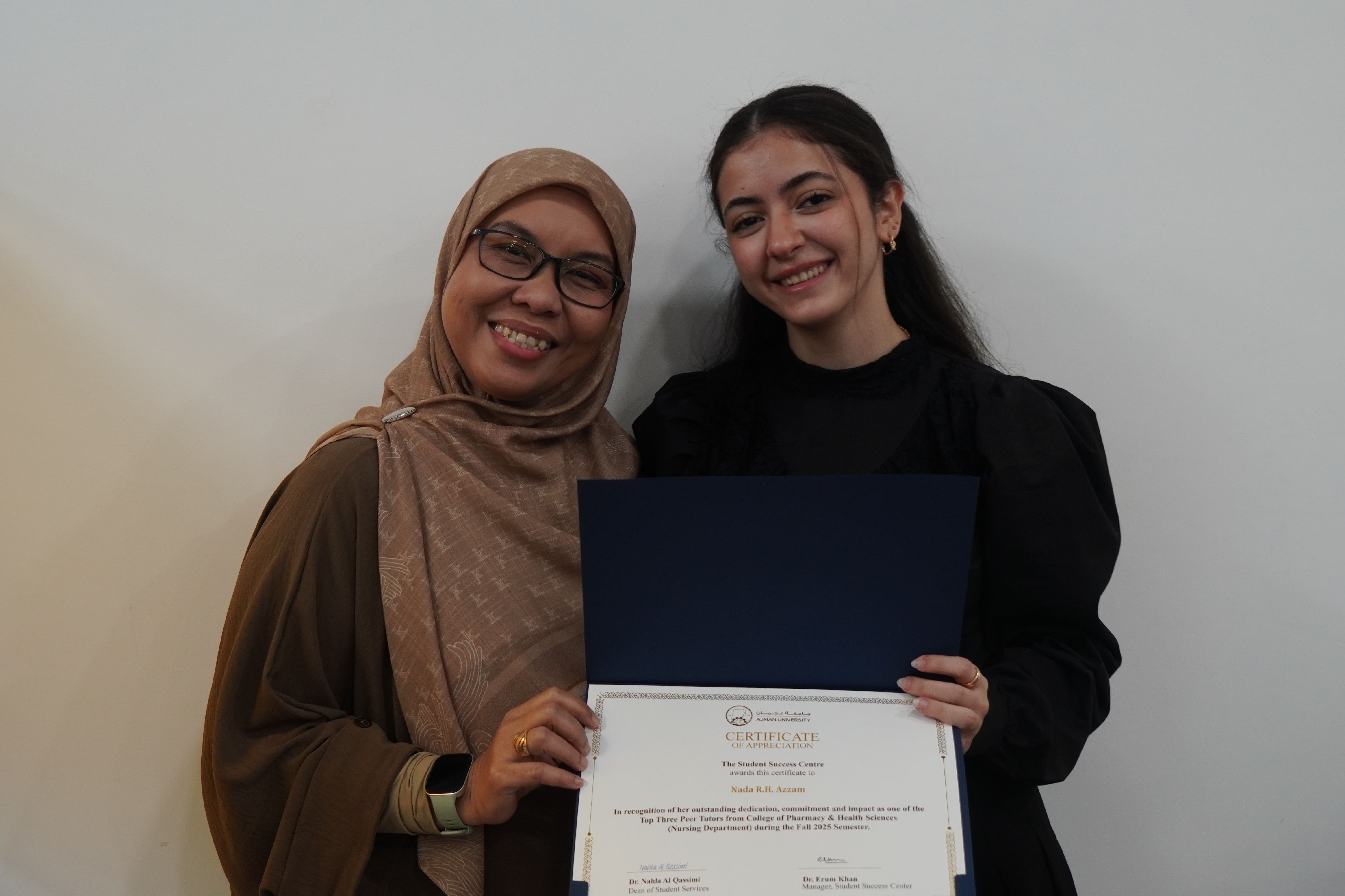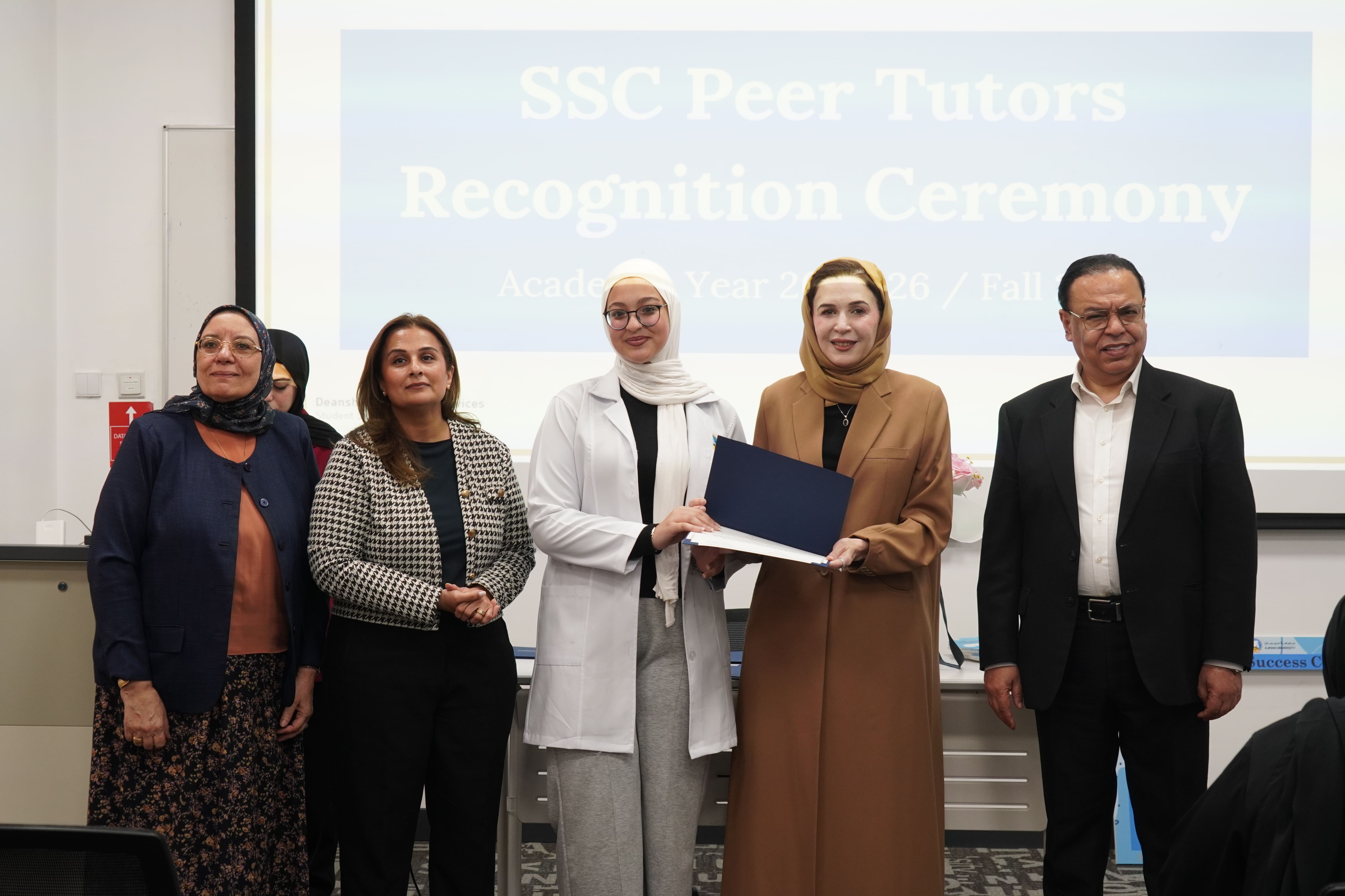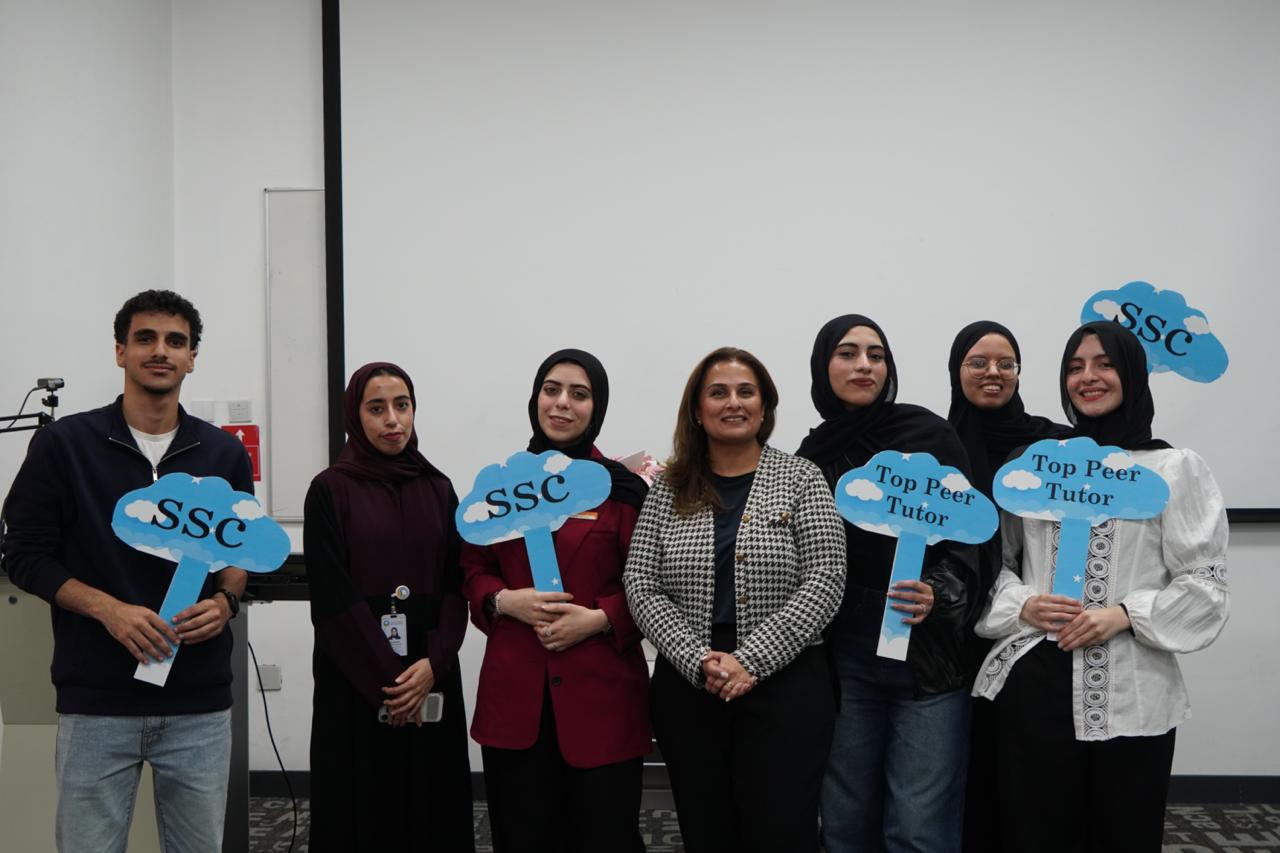 On February 17, 2026, the Student Success Center (SSC) hosted a recognition ceremony to honor the Top Three Peer Tutors – the SSC Champions. Awardees were selected based on the highest number of peer tutoring sessions conducted during Fall 2025, as well as the quality, impact, and verified documentation of their contributions. The ceremony also highlighted Peer Tutors who actively supported Students of Determination, resulting in measurable academic improvement reflected in enhanced course performance and GPA outcomes.