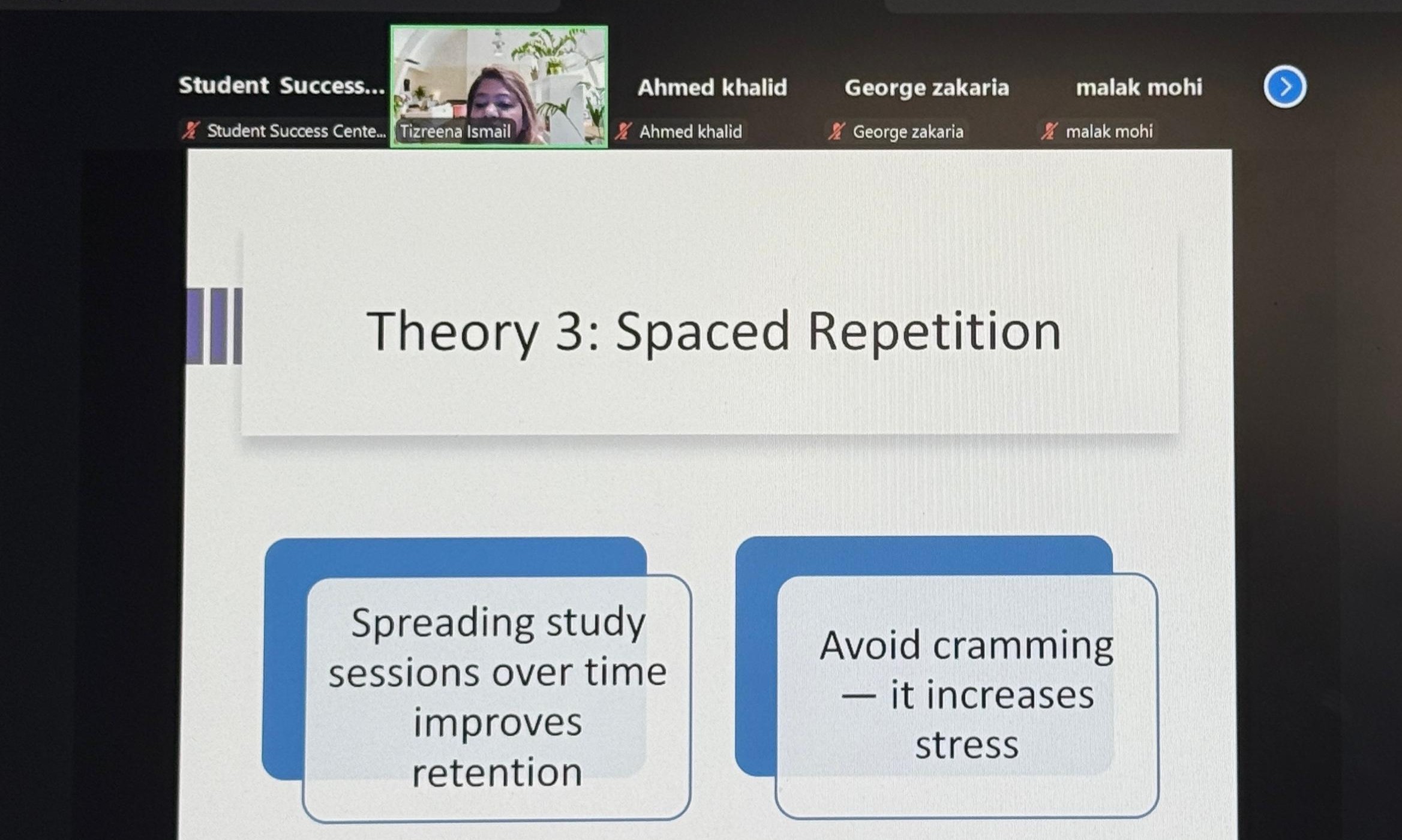 On March 4, 2026, the Student Success Center, in collaboration with the College of Humanities and Sciences, hosted a webinar titled "Master Your Midterms: The Smart Way to Prepare." The session was attended by 26 students and led by