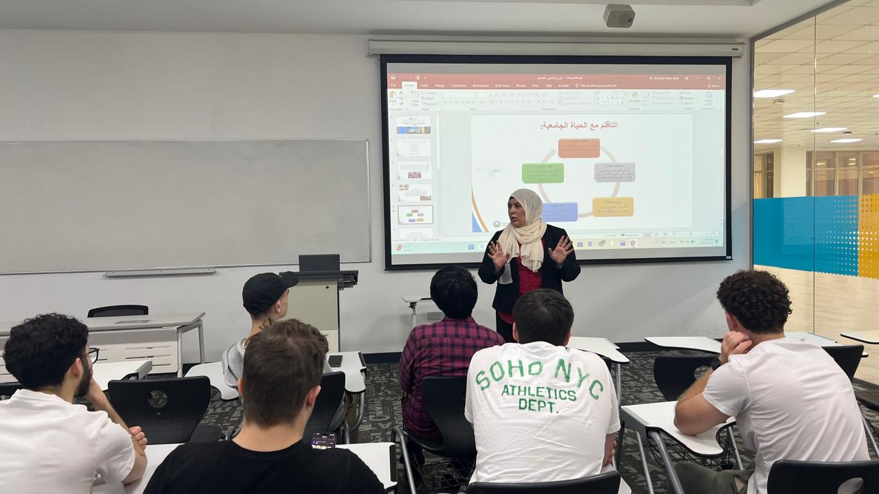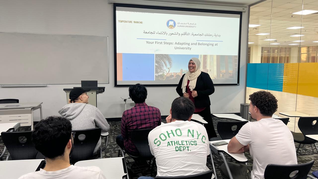 As part of Orientation Week, the Counseling Unit hosted a workshop titled: “Your First Steps: Adapting and Belonging at University” on January 14, 2026, led by Dr. Shorouk Abou Dahr, assistant professor, College of Humanities and Sciences. The workshop addressed the challenges students face when adapting to university life and finding a sense of belonging in a new academic environment. Dr. Abou Dahr highlighted strategies for building connections, managing expectations, and embracing the university community. Attendees gained practical tools to support their transition and start their journey at Ajman University with confidence.
