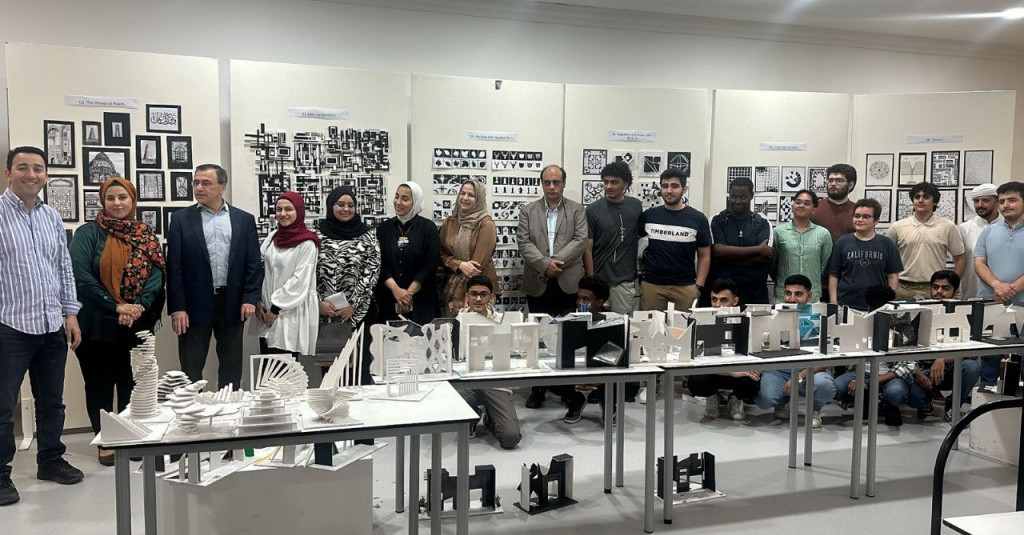 Dr. Muna Salameh, Senior Lecturer, and Ayat Elkazendar, Instructor, organized an exhibition titled "My Journey from Point to Pavilion" that presented the innovative architectural projects of first-year students. It showcased the transition of their ideas from abstract concepts to tangible designs. The exhibition also welcomed a visiting team from the University of Sharjah. |