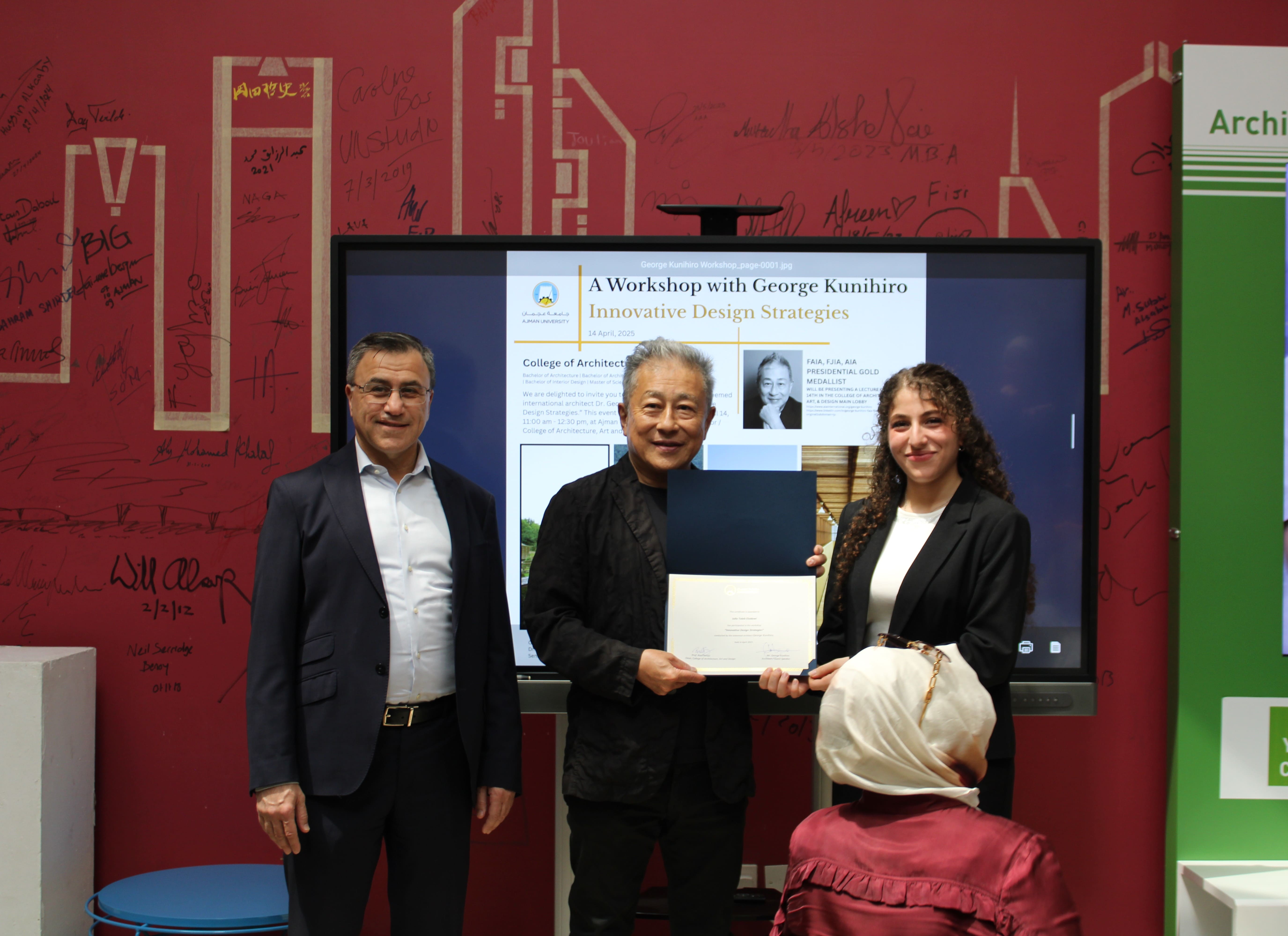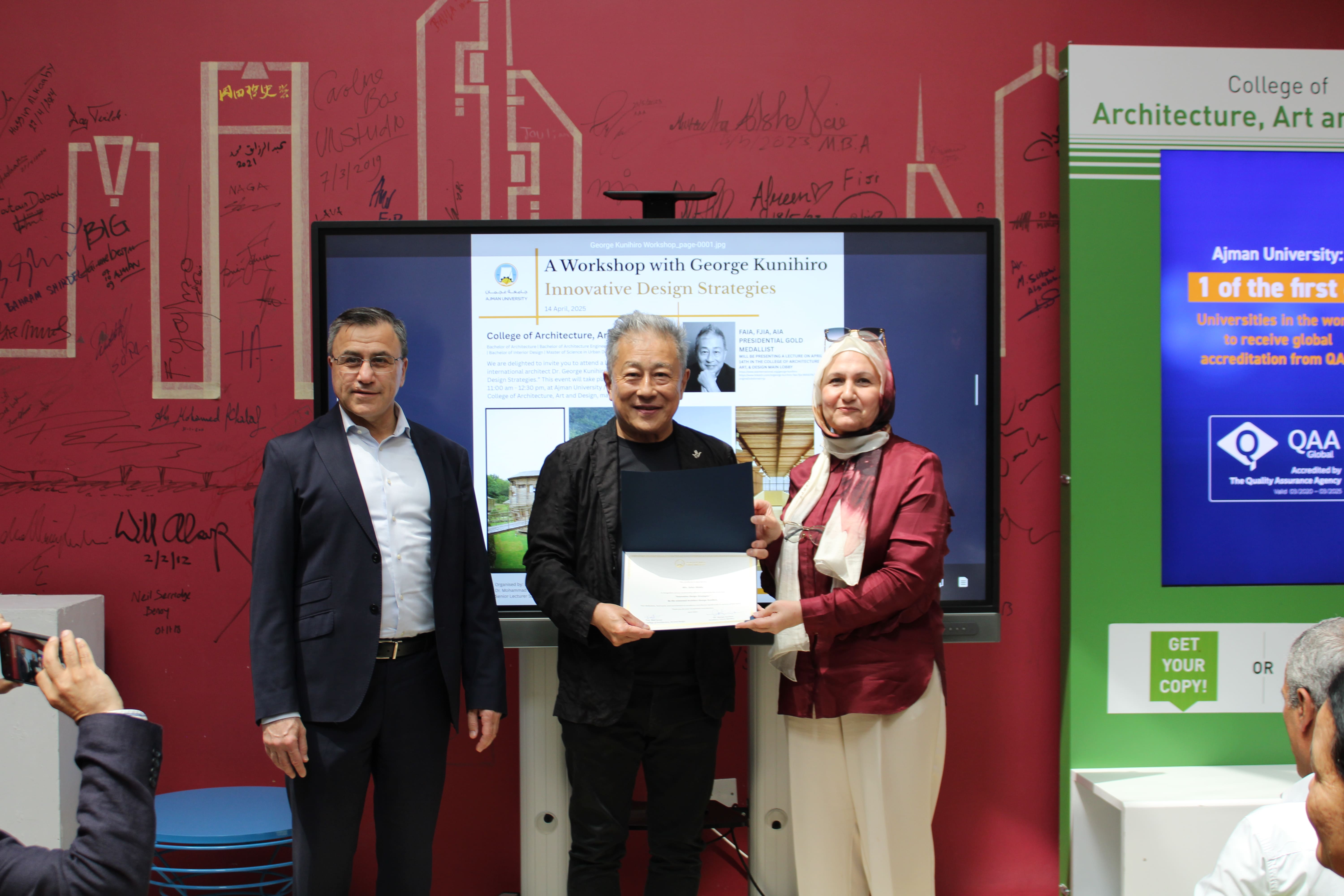 The College of Architecture, Art and Design (CAAD) at Ajman University recently welcomed acclaimed Japanese architect George Kunihiro for a transformative workshop titled "Innovative Design Strategies." This prestigious event provided architecture students with a unique opportunity to deepen their understanding of contemporary design practices, with a strong emphasis on sustainability, creativity, and functionality.