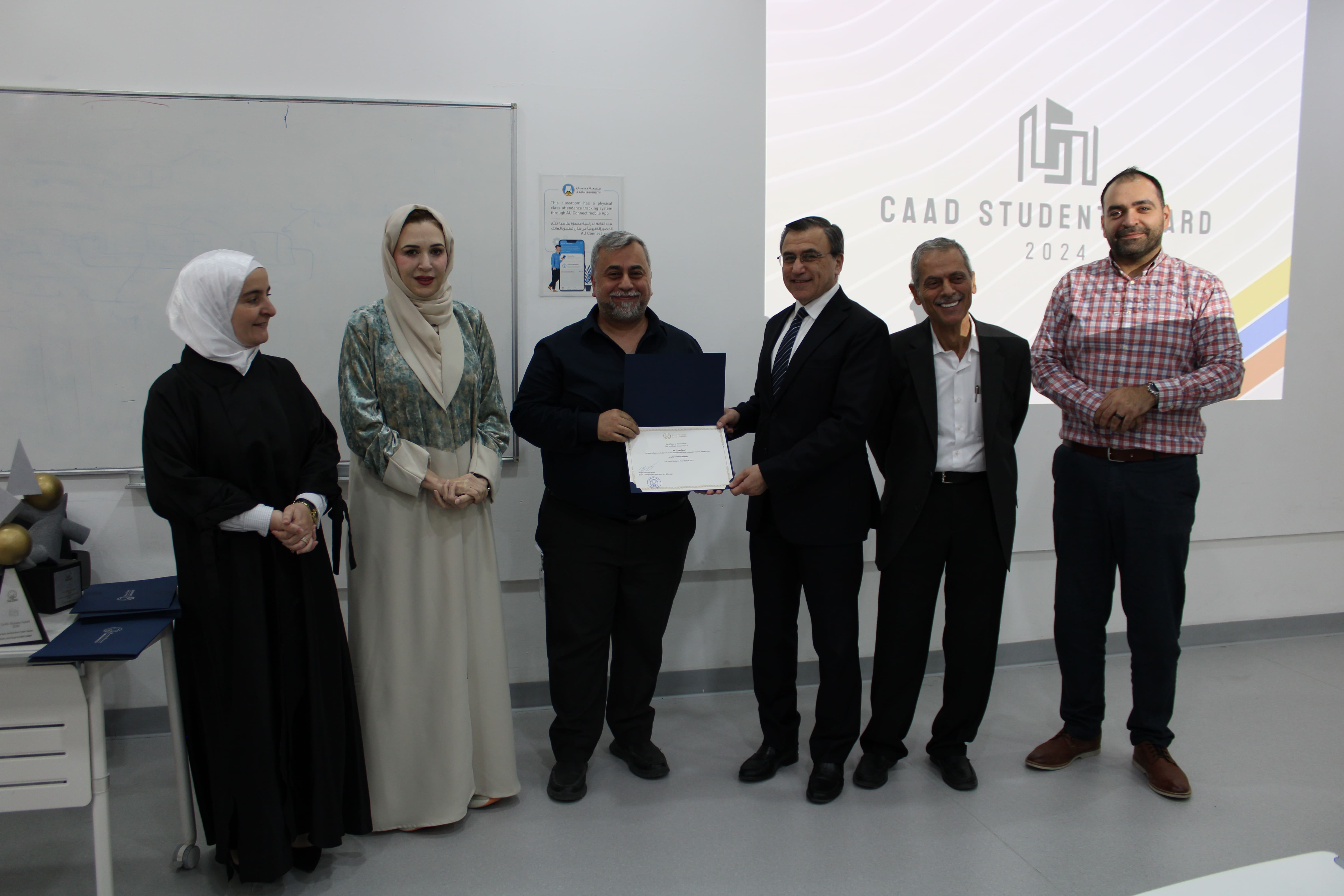 The College of Architecture, Art & Design (CAAD) at Ajman University hosted its highly anticipated CAAD Student Awards chaired by Dr. Raghad Mourad for celebrating the creativity, innovation, and academic excellence of its students. The fifth edition of the prestigious awards ceremony took place on February 28, 2025, recognizing the hard work and dedication of students across various award categories.