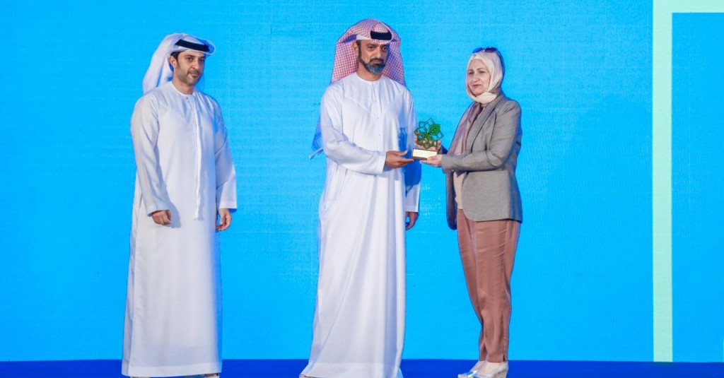 H.H. Sheikh Ammar bin Humaid Al Nuaimi, Crown Prince of Ajman and Chairman of the Executive Council, presented the award to Eng. Sahar Mikki, a faculty member of the supervisory team led by Prof. Sahar Sulaiman.