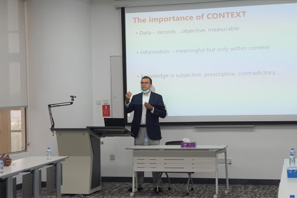 The Noida students' responses were of curiosity to listen and engaged participation with Prof. Venkitachalam to learn about the distinction between data, information and knowledge and the critical role Knowledge Management can play in the emerging age of Artificial Intelligence and Big Data in businesses."