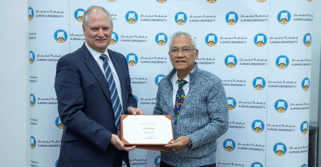 Faculty and staff of College of Business Administration, Ajman University got together on 8 December, to award faculty and staff members who have served CBA over the years and put in dedicated efforts to help CBA achieve its mission and realize its vision. Dr. Martin West, Dean CBA, thanked everyone and said that every member of CBA community has played an important role to make CBA one of the top Business Colleges in the region. He then spoke in detail about award recipients and their contributions to College of Business Administrations.