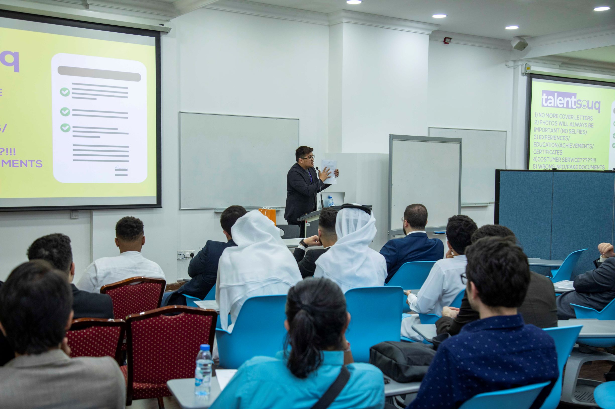 The participants were able to connect with employers such as Honda Gulf FZE, Dusit Thani, Almarai,Talentsouq, Mazi Contracting, Alan and Partners FZE, Mazi Car Rental, Genration Strong Fitness, Brillant Training Center, The Grooming Company, D Marketing Group and GGB Expat Journey Travel and Consultancy Service. One of the highlights of the event was a seminar titled “How to Ace Your Job Interview”, delivered by Mr. Alvin Joseph Fernandez, Managing Director of Talentsouq.