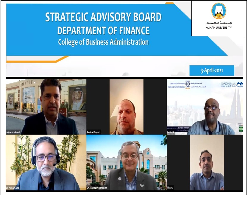 The department of finance held its advisory board meeting on 3rd April 2021. The advisory board consists of members from industry and academia. The objective of this board is to meet periodically and discuss issues spanning from curriculum development to job prospects.