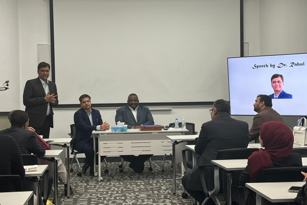 Several students in attendance shared fond memories of their times with Prof Rahul, with the celebrant on occasion visibly emotional as the students recounted tales of the impact he had made on their education despite his short stay at Ajman University. One of the recent finance graduates, Anik Islam said, "As a student, I have always appreciated that you put us first and never hesitated to go above and beyond to help us succeed." Another final year finance student, Nourhan Barafi said, "The majority have that one extraordinary instructor they will constantly recall, for us that instructor is you."