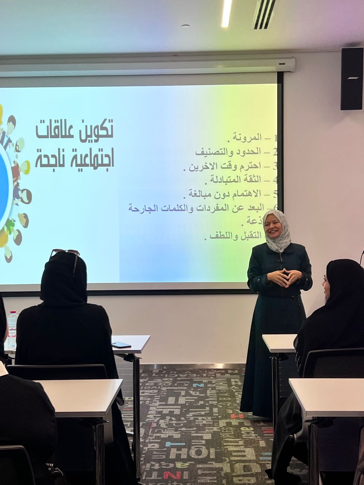 On Monday, November 14th, 2022, Ms. Sahar Zahran from the Department of Sociology and Social Work at the College of Humanities gave an interactive workshop to the students (females and males) from different majors and colleges, on how to form, maintain and learn from social relationships. Ms. Sahar Zahran provided valuable insights to the students of how to form healthy social relationships, maintain them and learn the lessons that these relationships bring. The lecture took place in the Student’s Hub at Hall CEC, where many students attended. The workshop was organized by the Counseling Unit at AU. Many students attended enjoyed participating in the discussion.