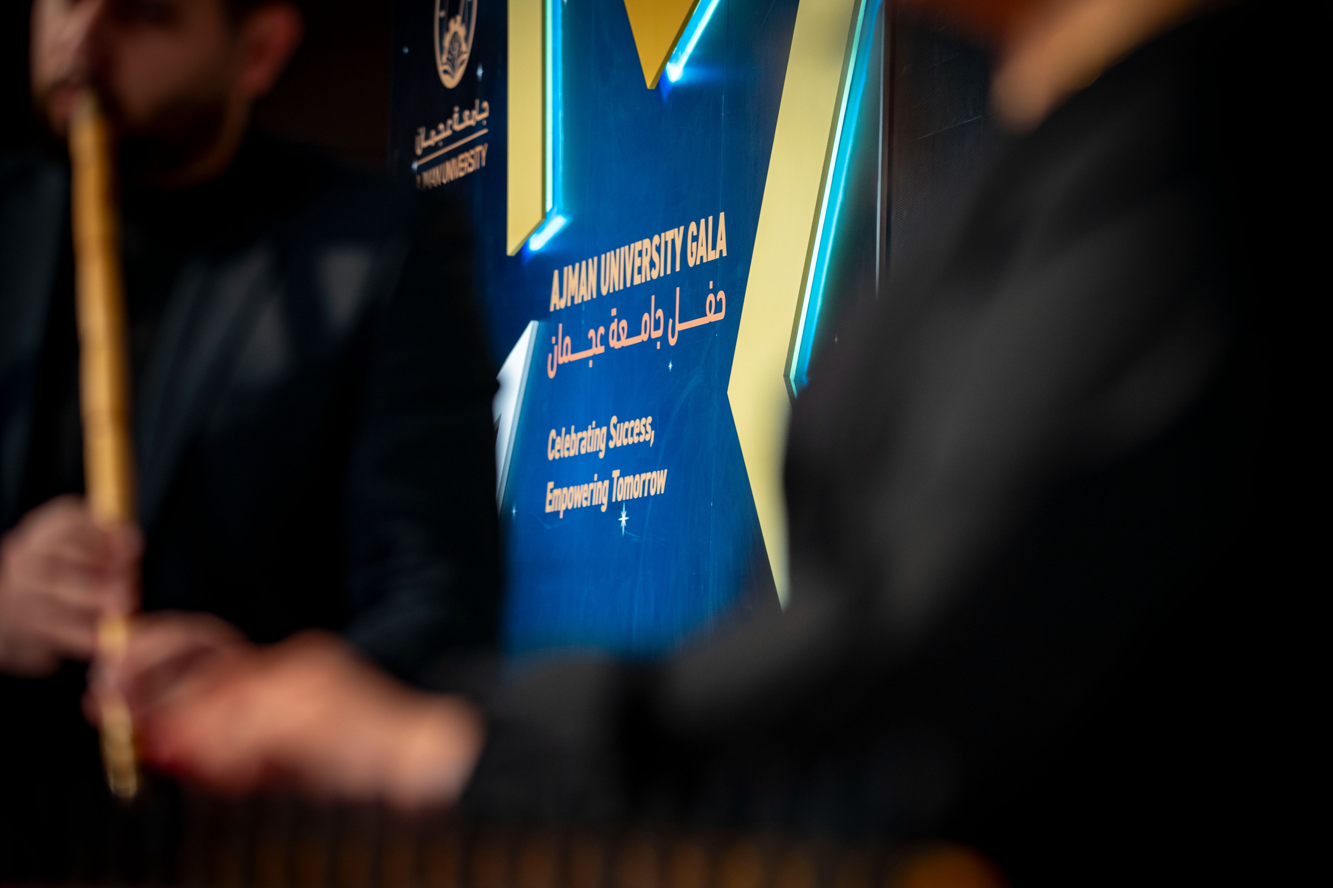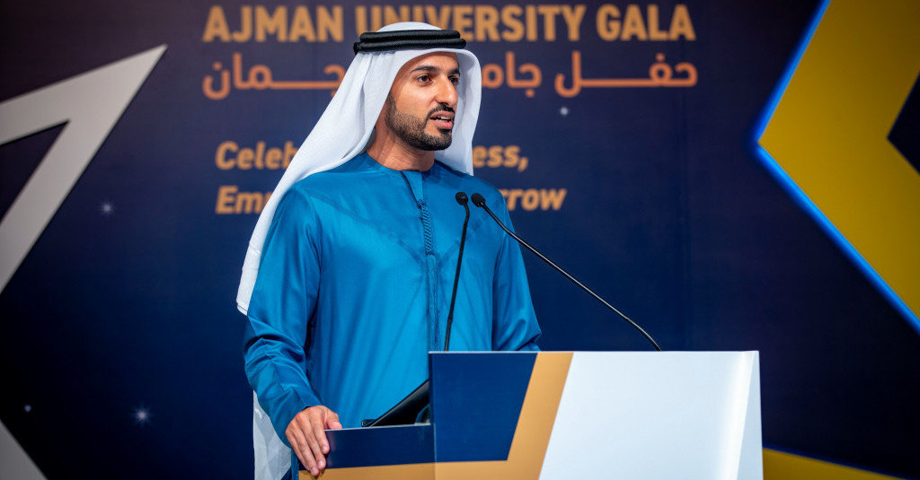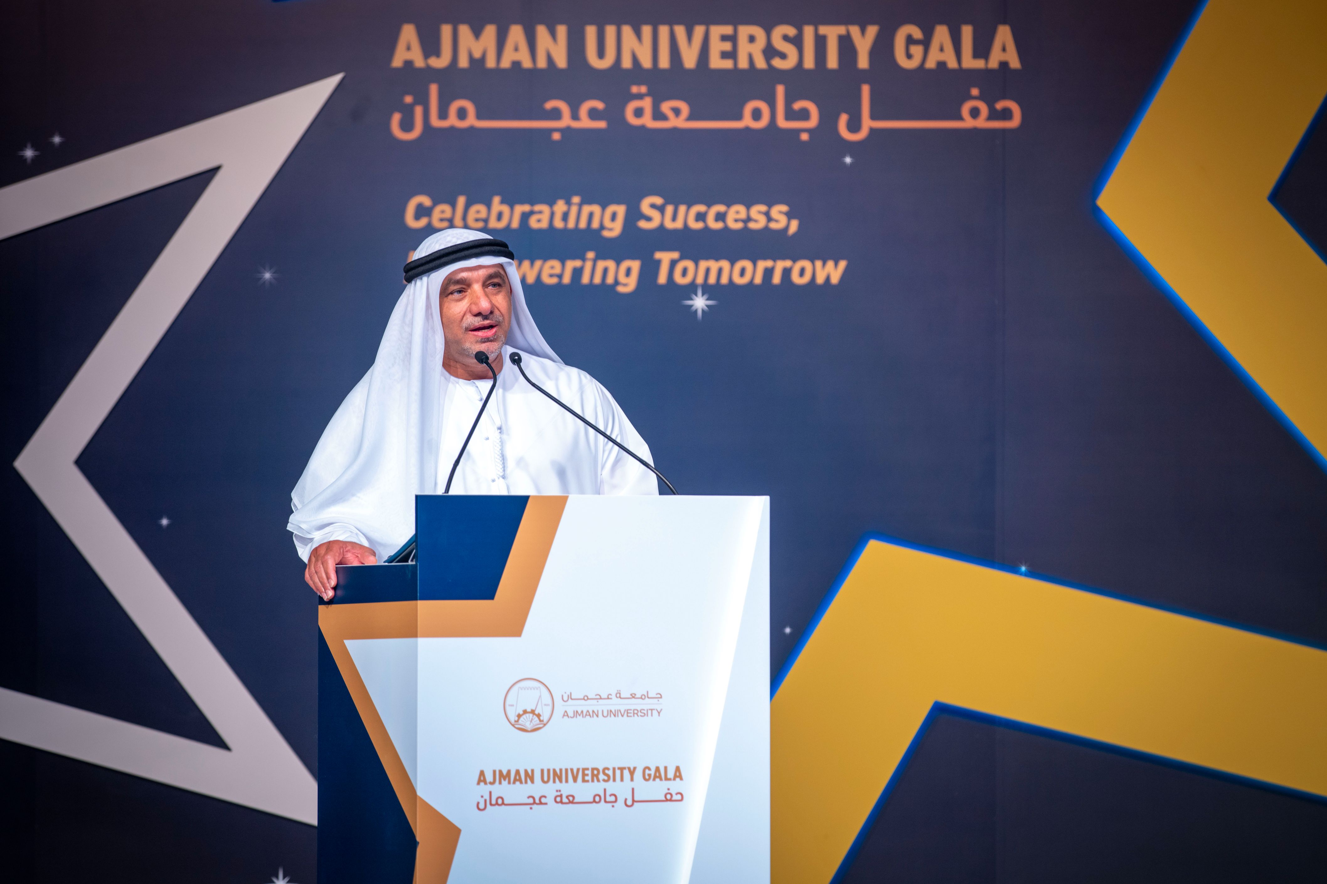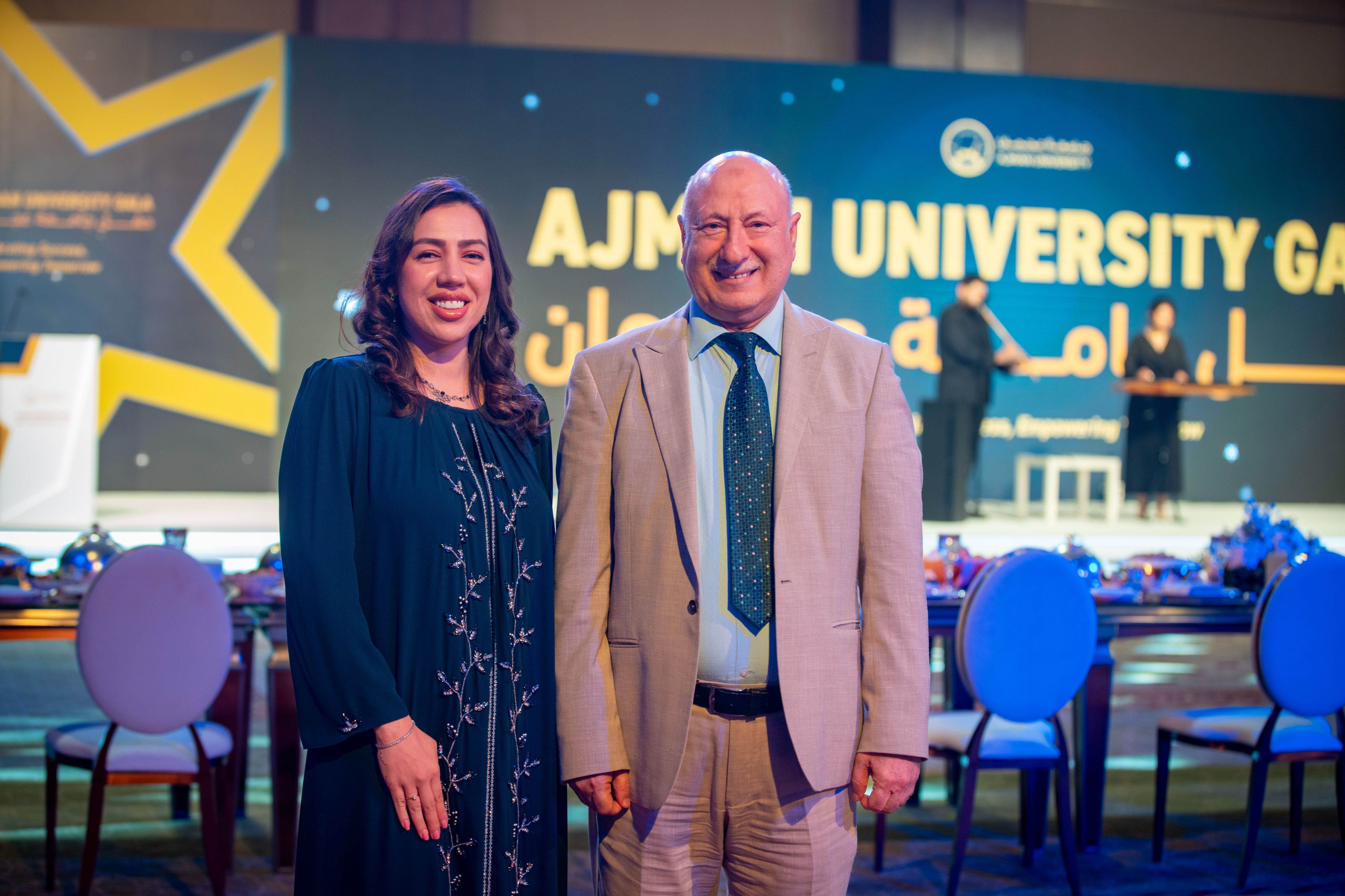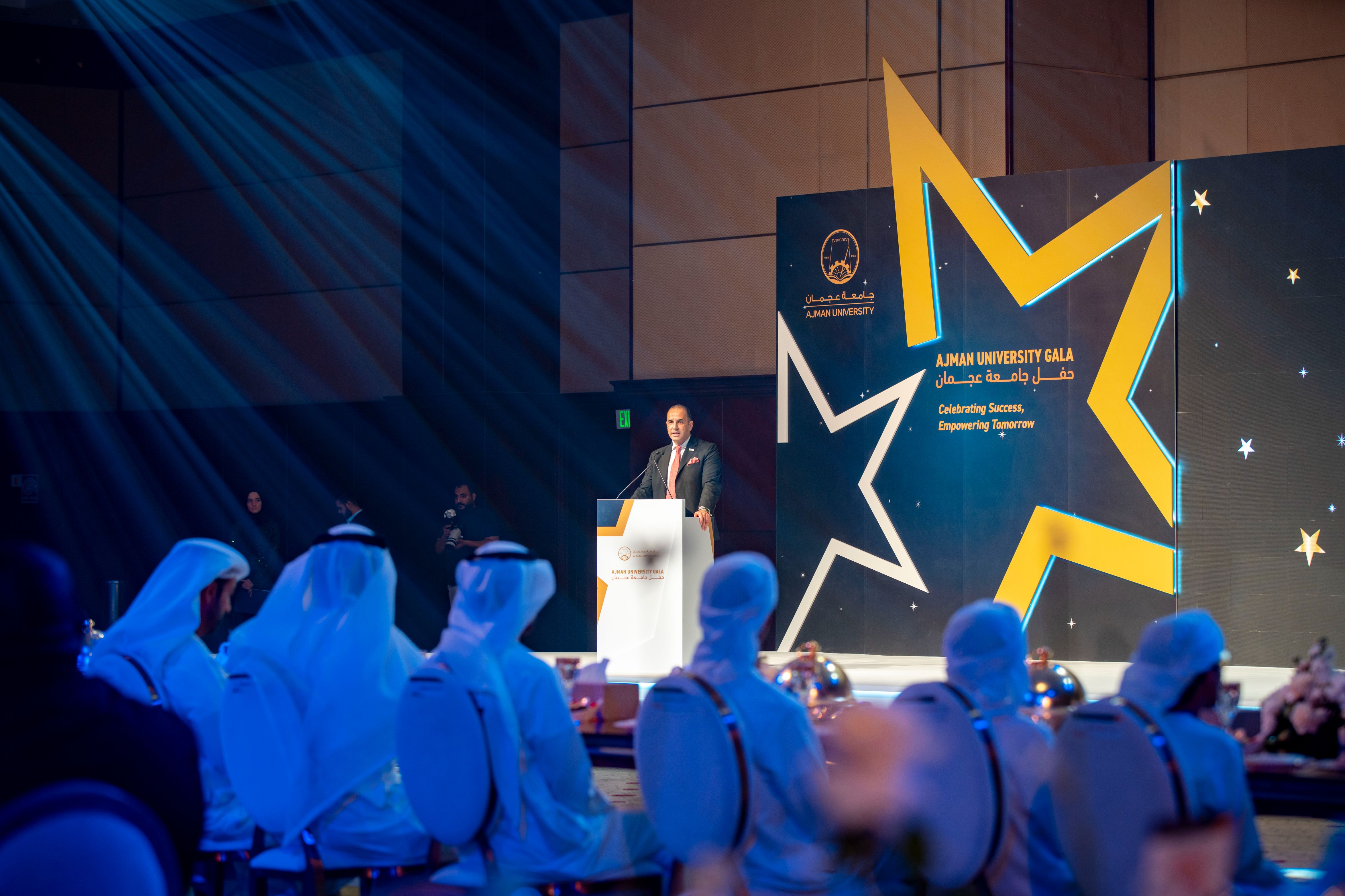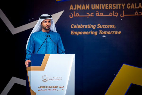 Under the esteemed patronage of His Highness Sheikh Ammar bin Humaid Al Nuaimi, Crown Prince of Ajman, Chairman of the Executive Council, and Chairman of the Board of Trustees of Ajman University, Sheikh Rashid bin Humaid Al Nuaimi, Chairman of Ajman Municipality and Planning Department and Vice Chairman of Ajman University's Board of Trustees, attended Ajman University Gala celebrating the University's recent local and international achievements.