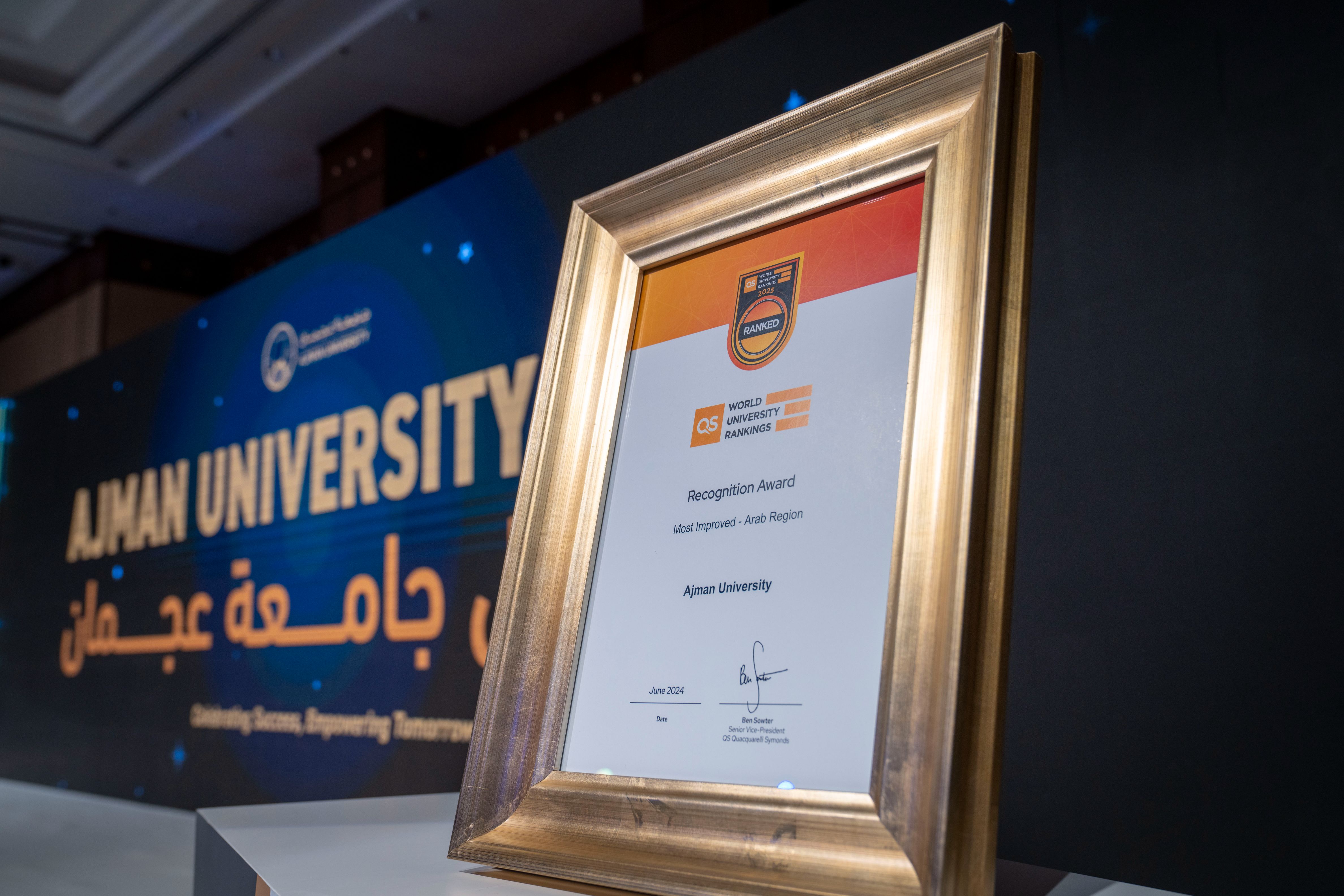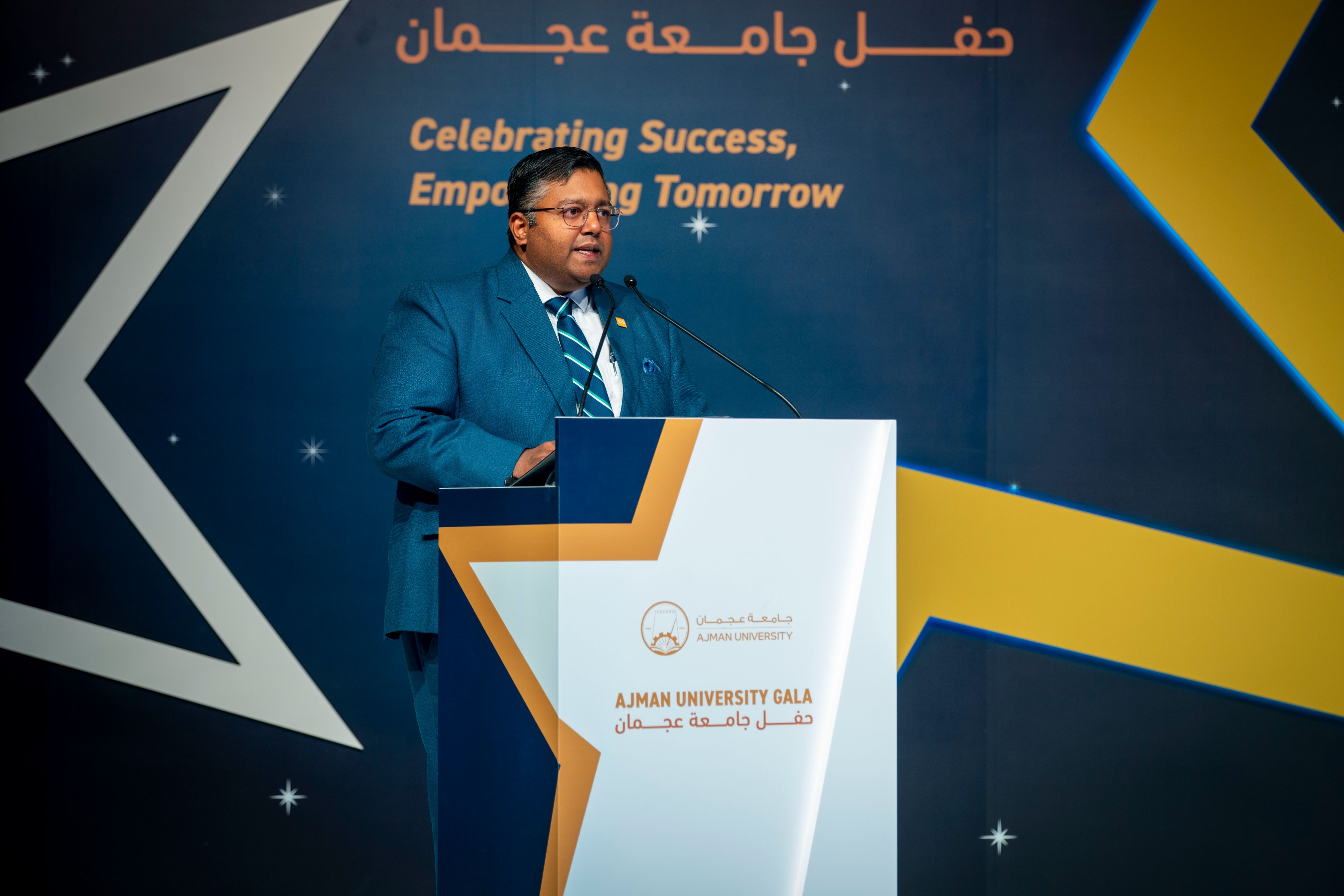 Dr. Ashwin Fernandez, in his speech, commended the University for its significant progress over the years. He particularly highlighted the University's win of the "Most Improved University in the Arab Region" award from QS, a recognition of its dedication to academic excellence. He emphasized that Ajman University's leading reputation among employers in the UAE reflects its commitment to academic excellence and creating an educational environment that meets the latest global standards. The University was honored by QS for its steadfast dedication to academic excellence and educational innovation.