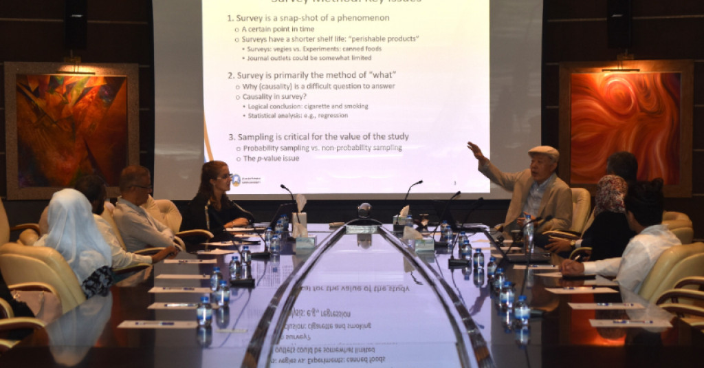 The seminar was presented by Dr. Sang Lee, the Master’s Program Coordinator, who covered various topics including methodologies of electronic surveys, sampling techniques, methods of developing surveys and data analysis, in addition to professional research writing techniques.