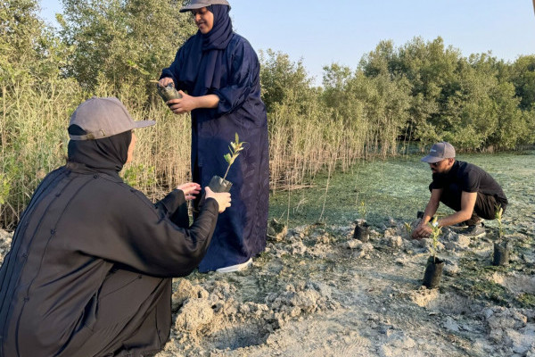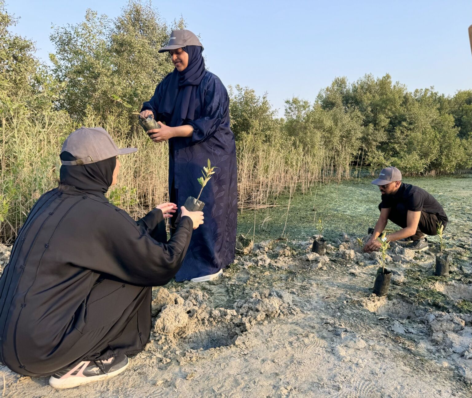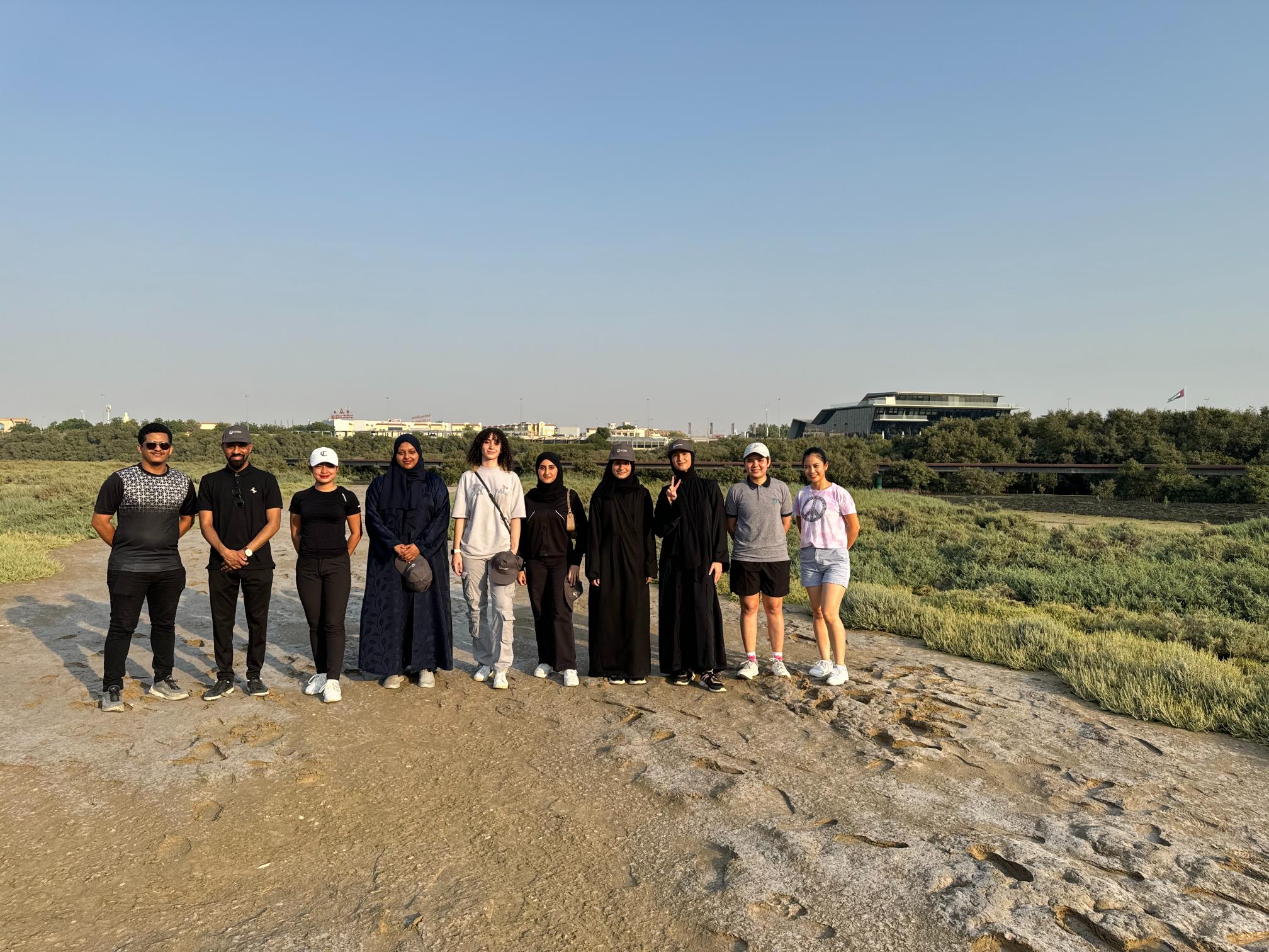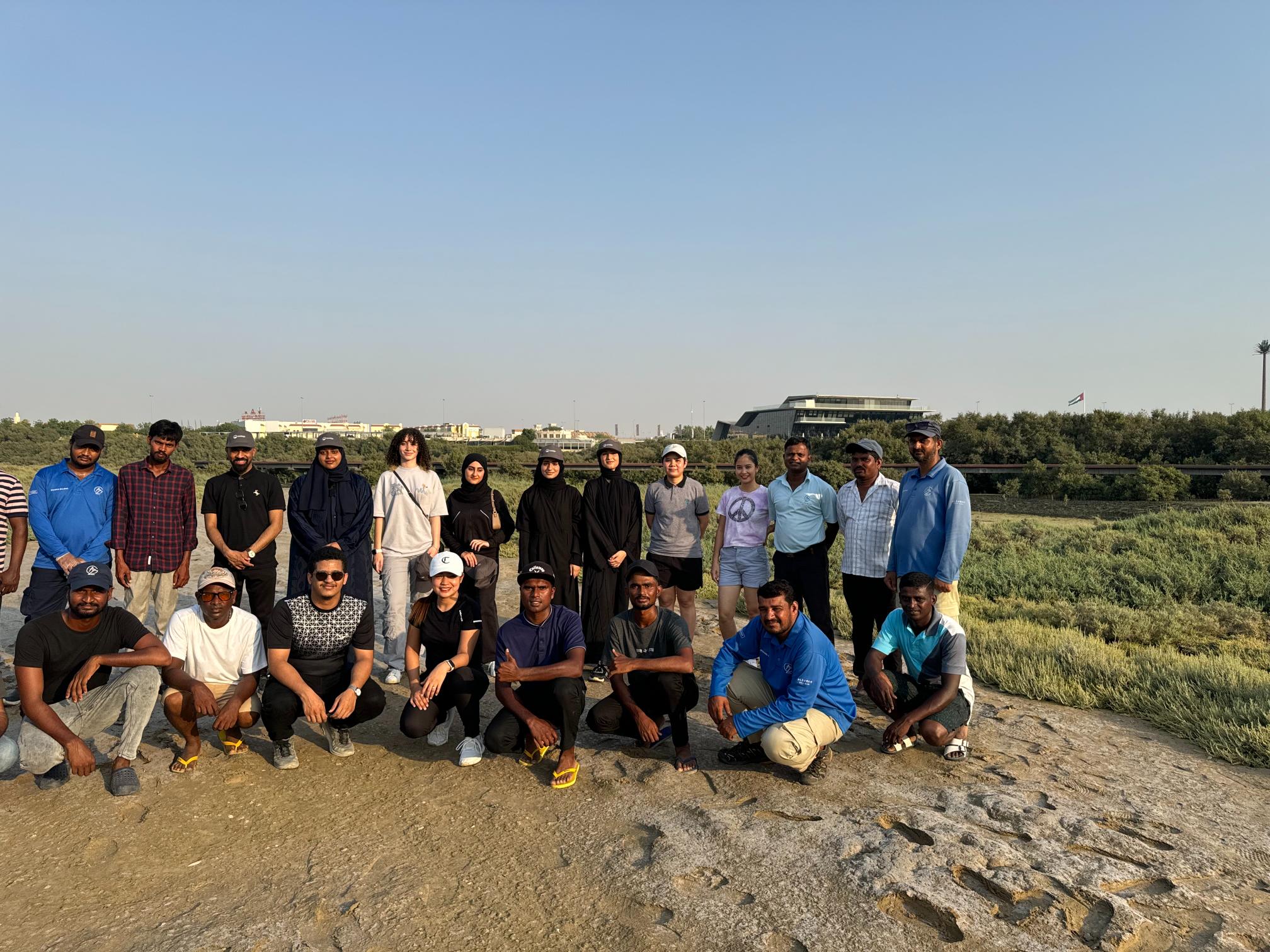 The Office of Sustainability, in collaboration with Al Zorah Golf Club, participated in the International Day for the Conservation of the Mangrove Ecosystem, celebrated annually on July 26. Around 20 volunteers from Ajman University, including students and staff, took part in the event, engaging in activities such as cleaning plastic waste from the mangrove environment and planting mangrove saplings in the golf area. The initiative aimed to raise environmental awareness and promote sustainable practices.
