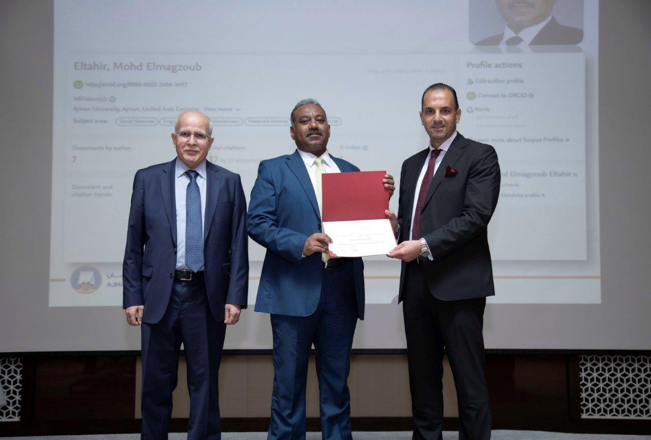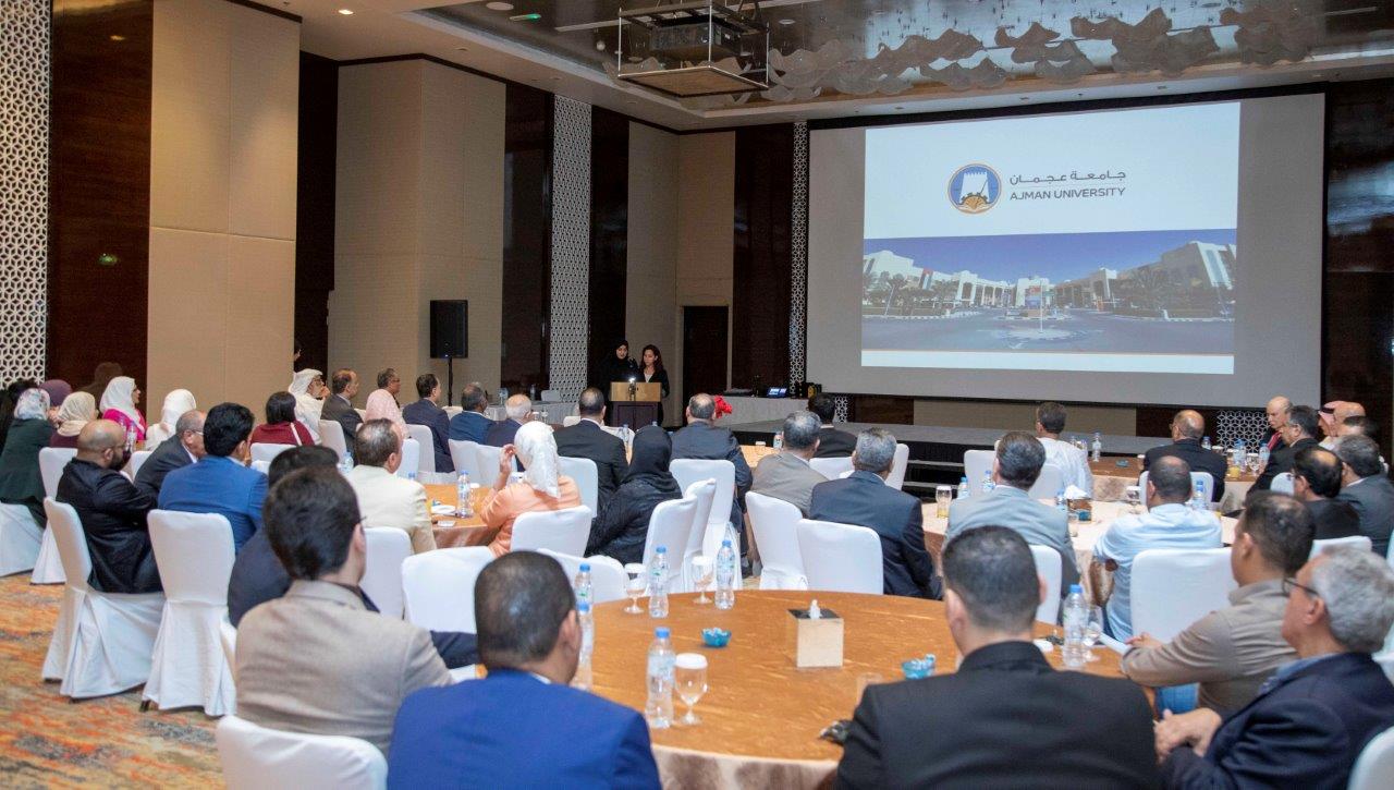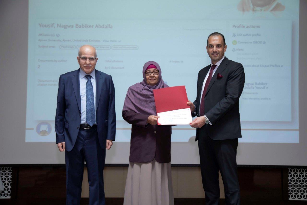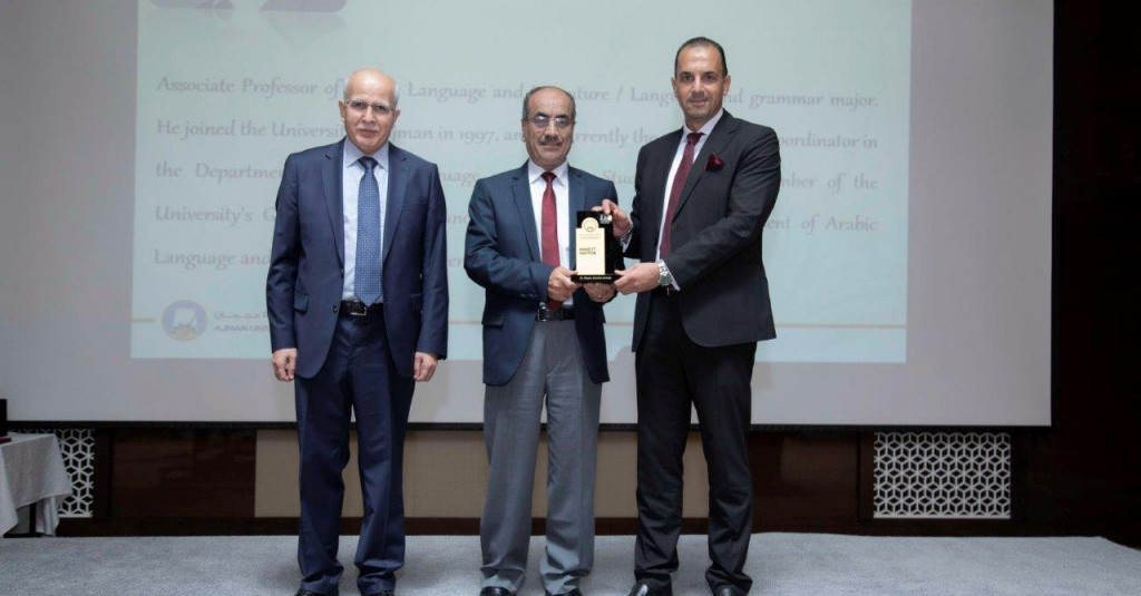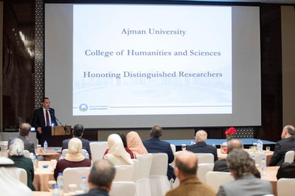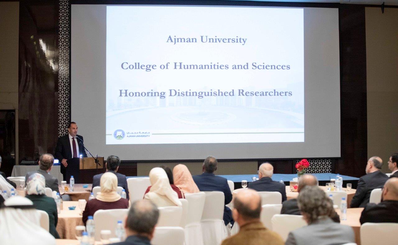 The College of Humanities and Sciences at Ajman University celebrated a group of distinguished researchers and leaders from the college’s faculty members who provided great administrative services to the college and the university in a ceremony attended by Dr. Karim Seghir, AU Chancellor, Dr. Khaled Al-Saleh, AU Vice Chancellor for academic affairs, and Dr. Kamran Arshad, Dean of Graduate Studies and Scientific Research.