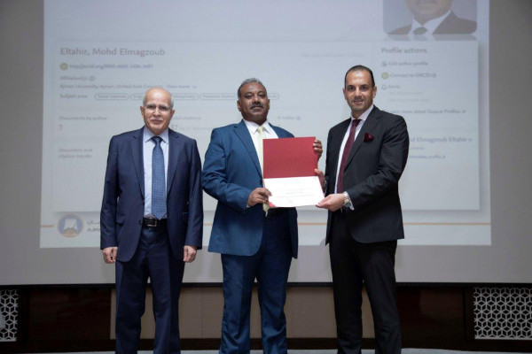 At the end of the ceremony, the faculty distinguished researchers and administrative leaders were honored with certificates and trophies. Professors honored for the distinguished research category are: Dr. Samir Bashir Hadid, Dr. Moez Dawi, Mr Samer Hosni Zayoud, Dr. Muhammad Al-Majzoub Al-Taher, Dr. Atef Fayez Abdul Qadir, Dr. Najih Rajeh Al-Salihi, D. Sami Suleiman Al-Qatawneh, Dr. Najwa Babiker Youssef, D. Rasha Abdullah, Dr. Dalia Ahmed Bedewi, Ms Al-Rawashdeh era, D. The Najah Ibrahim Al-Ramahi, D. Alaa Zuhair Al-Rawashdeh, and D. Asmaa Al Arab. The faculty members who provided great services in previous years were also honored: Prof. Dr. Sheikh Ould Hammoud, Prof. Saeed Nassef, and Dr. Mazen Jaradat.