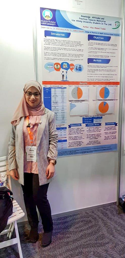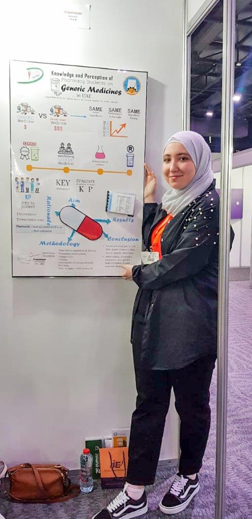 Student Layal Mamdouh seized the eighth best pharmacy student innovative poster award for her project: “Knowledge and Perception of Pharmacy Students on Generic Medicine in UAE”.