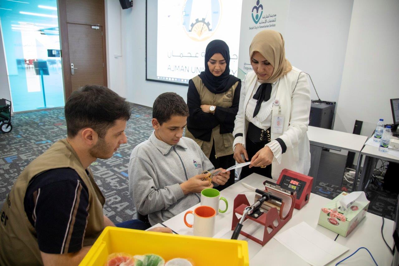 The participating 15 students of Ajman University were so excited to work with the 20 determined children of Al Wafa School and learn more about them.