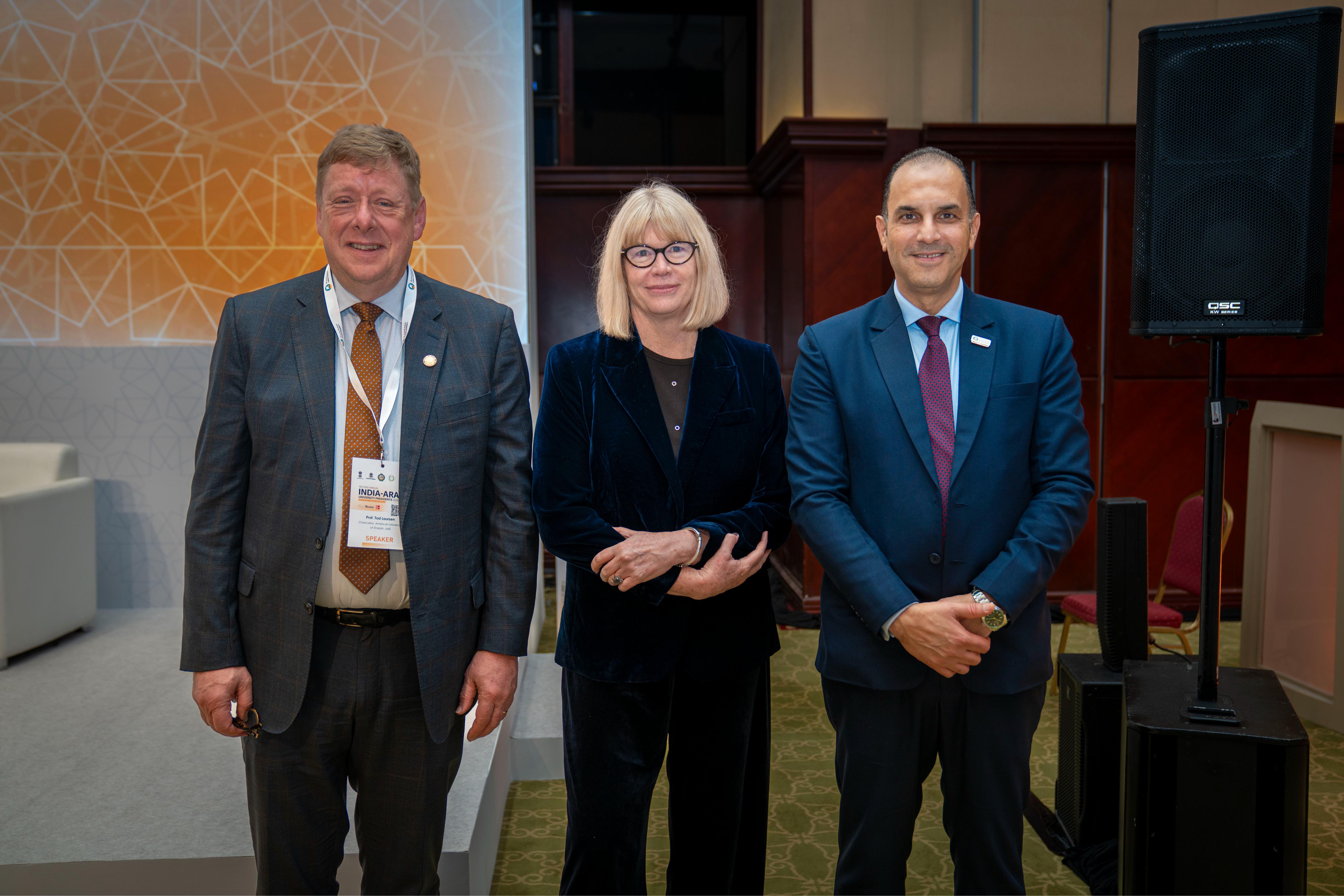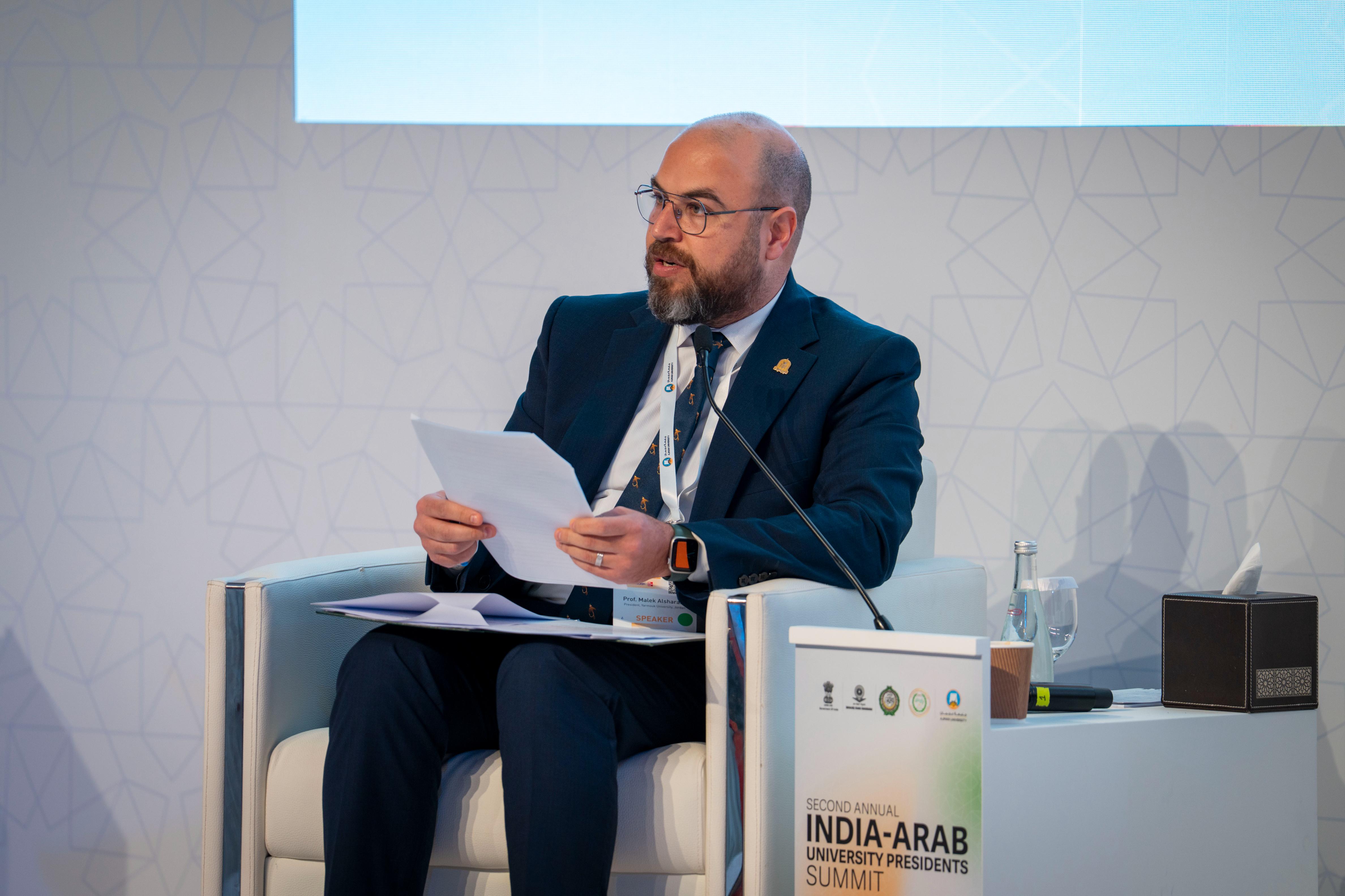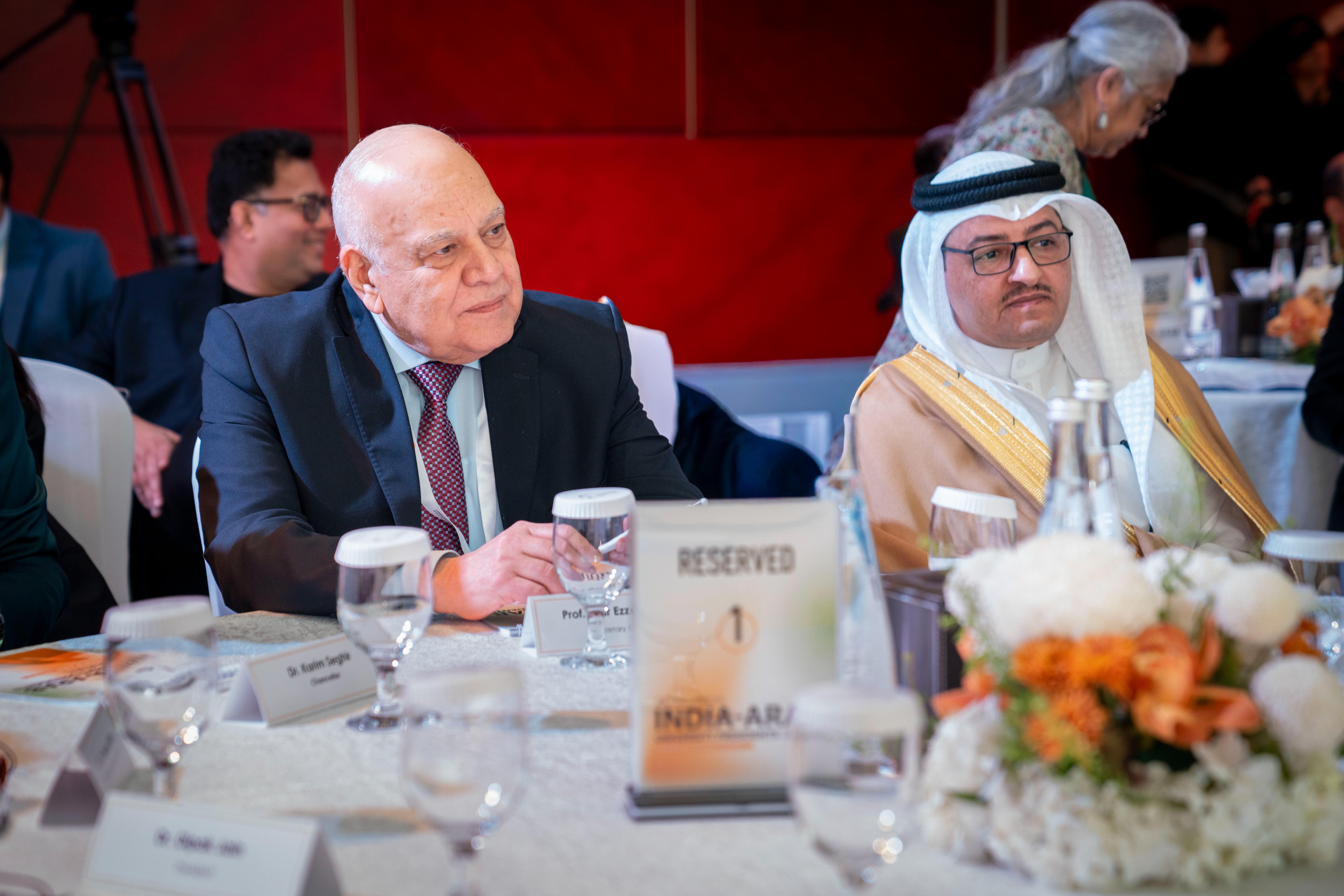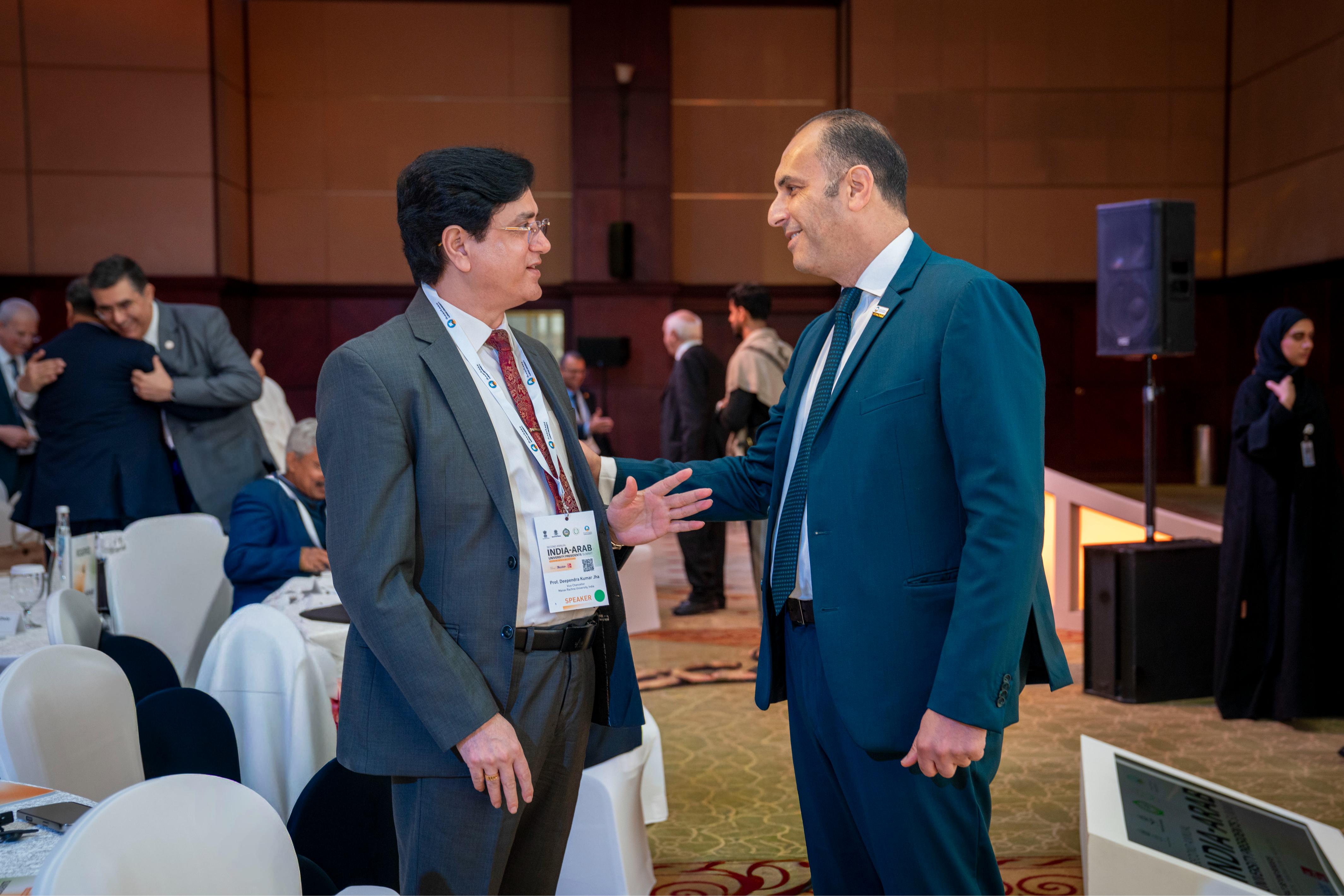 Senior regional and diplomatic leaders reinforced this vision through remarks emphasizing the strategic importance of coordinated academic action. Prof. Amr Ezzat Salama, Secretary-General of the Association of Arab Universities, highlighted the urgency of advancing institutional alignment across the Arab higher education landscape. Dr. Farraj Juwaid Al-Ajami, Minister Plenipotentiary and Director of the Education and Scientific Research Department at the League of Arab States, addressed the policy frameworks required to strengthen research ecosystems and formalize cross-regional collaboration. Dr. Deepak Mittal, Ambassador of India to the UAE, underscored the growing educational partnership between India and the Arab world and the role universities play in translating these relations into sustained academic, economic, and societal impact.