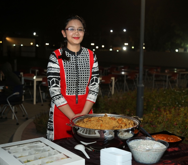 In an informal environment infused with the smells of wonderful food, students and management enjoyed the dishes. Countries like UAE, Saudi Arabia, Kuwait, Oman, Japan, India, Palestine, Syria, Egypt were amongst the ones represented.