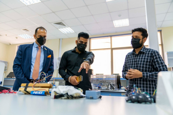 During the visit, Chaudhary toured a number of Ajman University facilities, including the Biomedical Engineering Lab where they he viewed student projects. Additionally, Chaudhary visited the College of Architecture where he explored the 3D printing lab and the lightening lab.