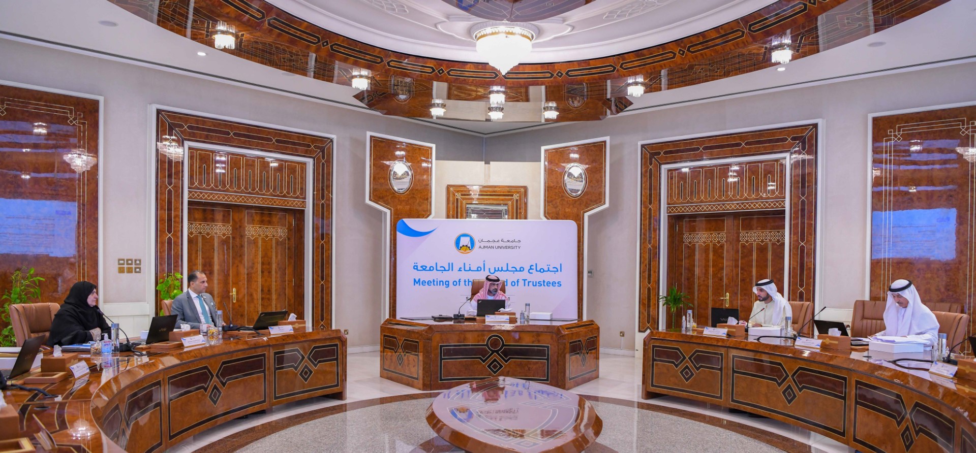 The meeting was attended by members of the new Board of Trustees Abdullah Humaid Al Mazrouei, Abdullah Muhammad Al Muwaiji, Chairman of the Board of Directors of the Ajman Chamber of Commerce and Industry, Dr. Saeed Saif Al Matrooshi, Secretary General of the Executive Council in Ajman, Dr. Amna Al Dahak Al Shamsi, Assistant Undersecretary for the Care and Activities Sector at the Ministry of Education, and Dr. Raja Easa Al Gurg, CEO of the Easa Saleh Group Al Gurg and Dr. Amina Abdul Wahed Al Rostamani, Board Member and Director of the Abdul Wahed Al Rostamani Family Company, Dr. Dalia Al Muthanna, President and CEO of General Electric in the Gulf Region, and HE Rashid Abdul Rahman bin Jubran Al Suwaidi, Director General of Ajman Government Human Resources Department.