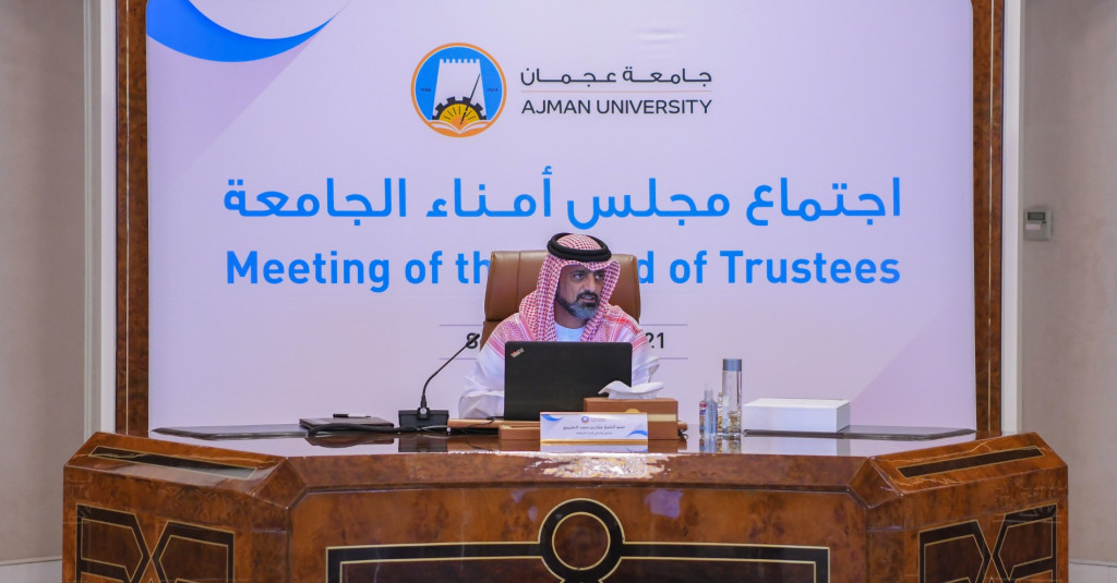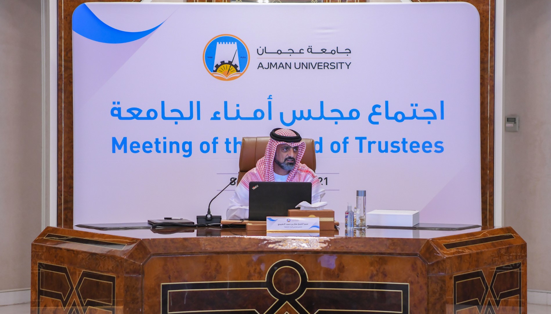 Sheikh Rashid bin Humaid Al Nuaimi gave a presentation on what was achieved during the period between the last meeting of the Council and the current meeting, during which he indicated that the adoption of the annual budget for the academic year 2021-2022 aims to ensure full compliance with local and international accreditation standards and enhance the academic classification of the university.