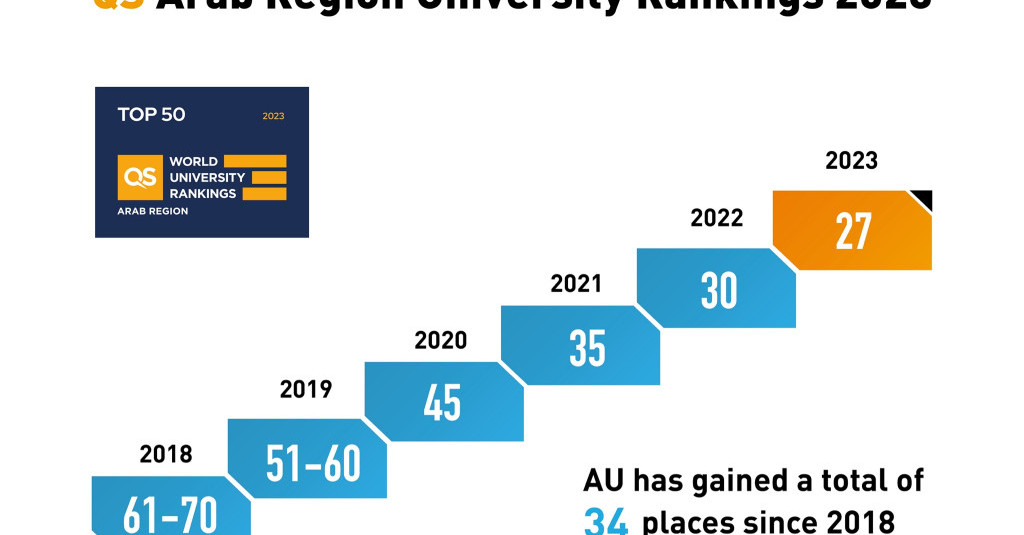 Ajman University has moved up 3 places since last year in the QS Arab Region Rankings 2023 and is now ranked #27 overall. AU has gained a total of 34 places since 2017!