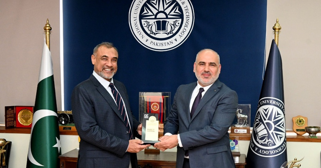 Prof. Khaled and Prof. Kamran visited NUST on Thursday, June 30 2022 where they were welcomed by the NUST Rector, Engr Mr. Javed Mahmood Bukhari. This was followed by a meeting with other members of the senior administration of NUST, including Pro-rector of Academics, Pro-rector of Research, Innovation and Commercialization, Principal of Engineering, IT and Computer Science etc. During the meeting, presentations and mutual discussions were held on potential collaboration across a number of academic and research areas by representatives of both universities.