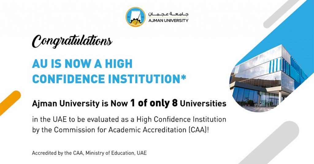 Ajman University (AU) is proud to announce that it has been recognized as a High Confidence Institution by the UAE Ministry of Education’s Commission for Academic Accreditation (CAA), becoming one of only eight universities in the UAE to achieve this status.