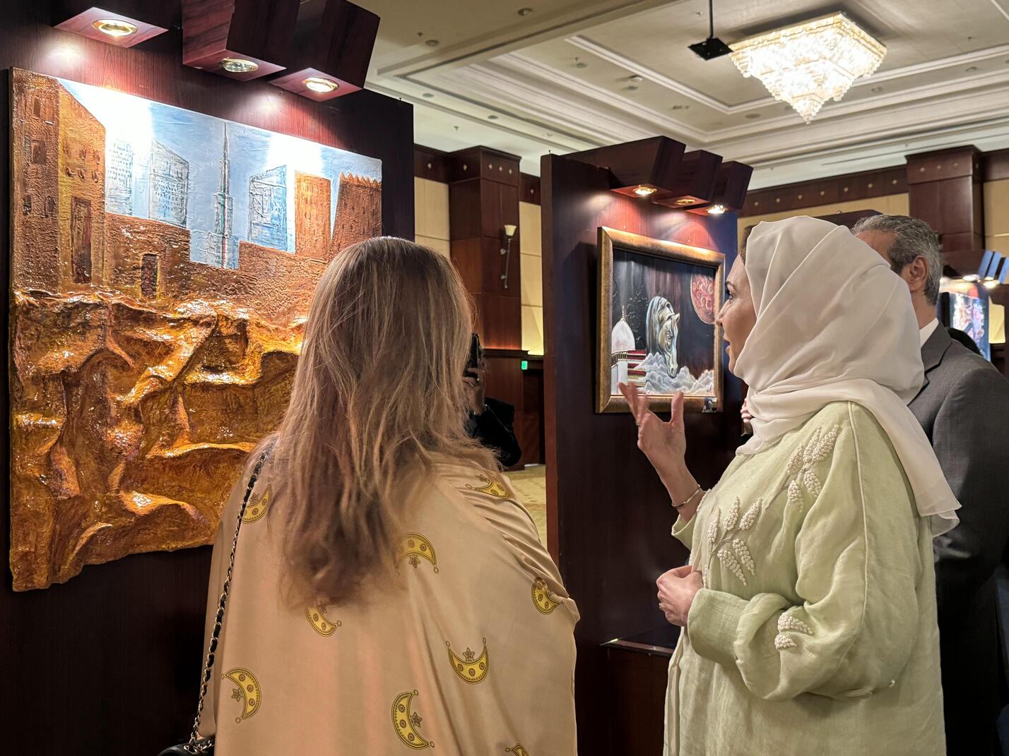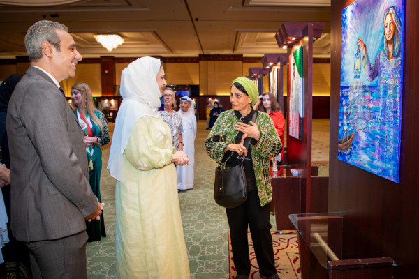 Remarkable paintings were on display, reflecting the UAE's significant transformations and advancements in various fields such as buildings, urban development, traditional professions, and handicrafts. These artworks skillfully highlighted a diversity of ideas and portrayed the inspiring heritage and the history and present of the country. Through the language of colors and shapes, the paintings narrate the stories of the ancestors, offering a cohesive portrayal of the rich heritage and innovative spirit within the Emirati society.