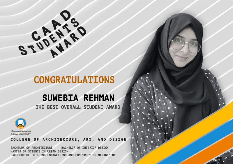The College of Architecture, Art & Design (CAAD), Ajman University held the third edition of its annual CAAD Student Awards on March 20, 2023. Launched in 2021, CAAD Student Awards recognize academic excellence, creative endeavor, and leadership demonstrated in the Architecture and Interior Design streams of the college.